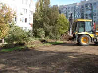 За домом №16 со стороны ограждения школы № 26 тяжелая техника расчищает заросший пустырь, передает КерчьФМ.