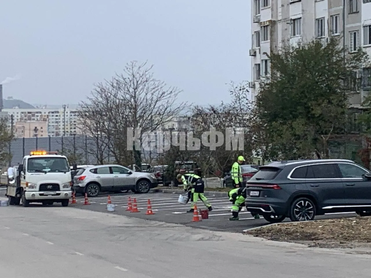 На новых парковках по ШГС в Керчи нанесли разметку