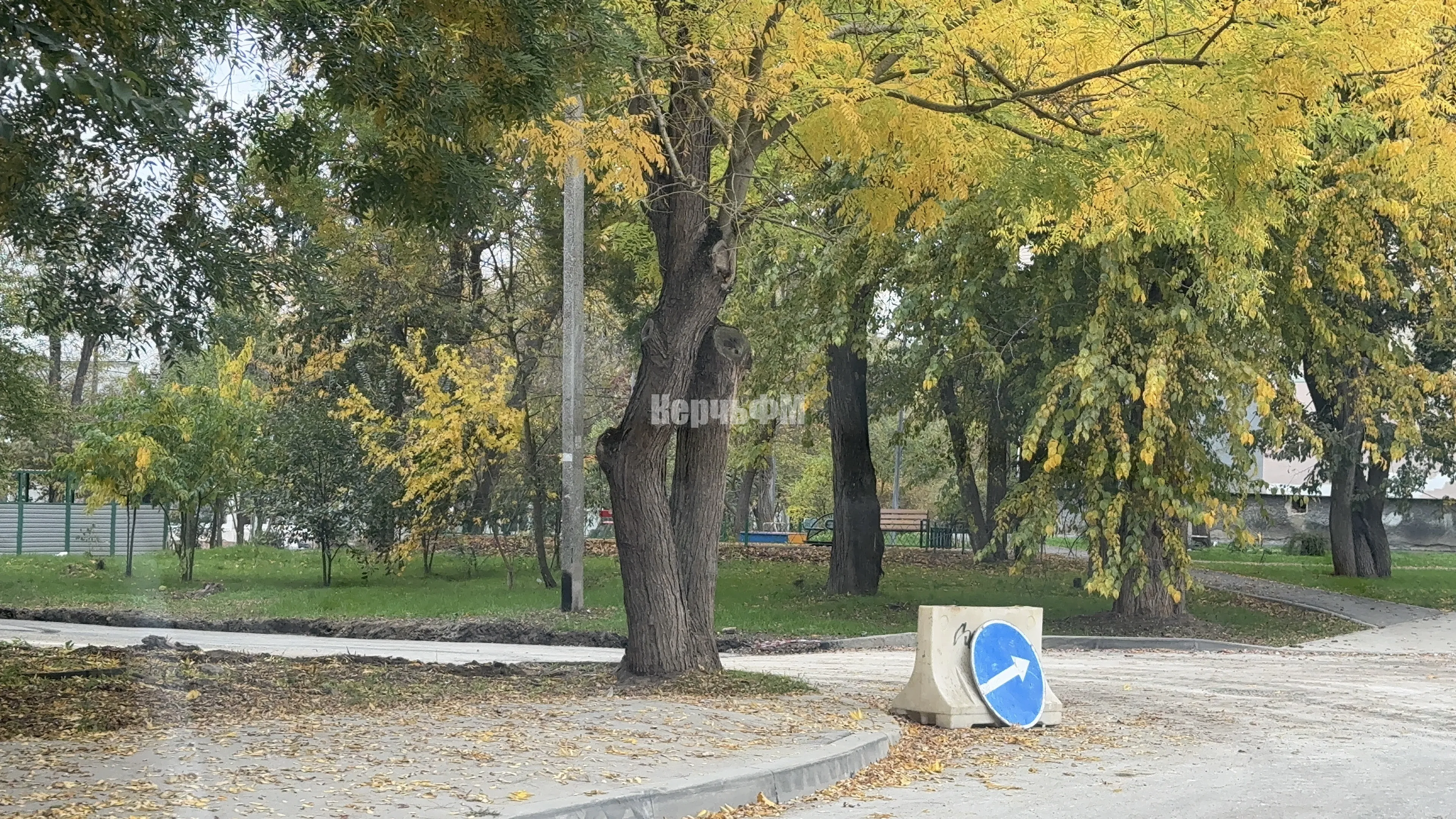 Движение транспорта около детского сада было перекрыто из-за дорожных работ.