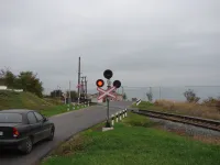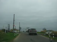 На ж/д переезде по дороге на Еникале красный сигнал светофора горит необоснованно долго.