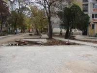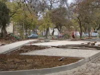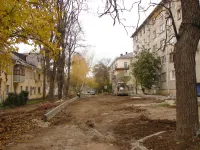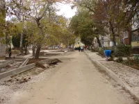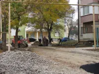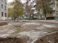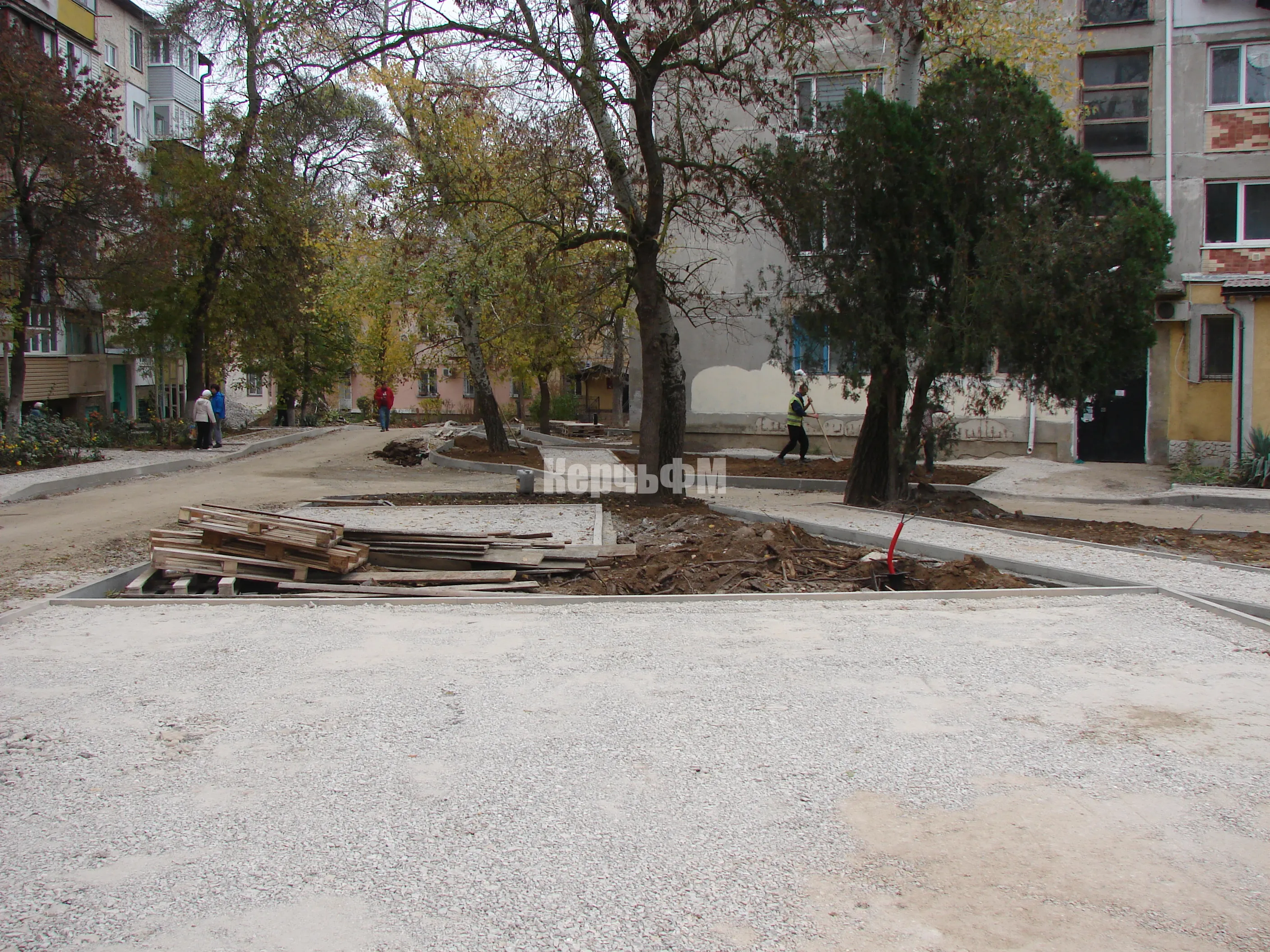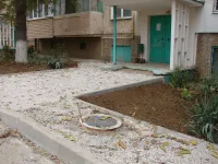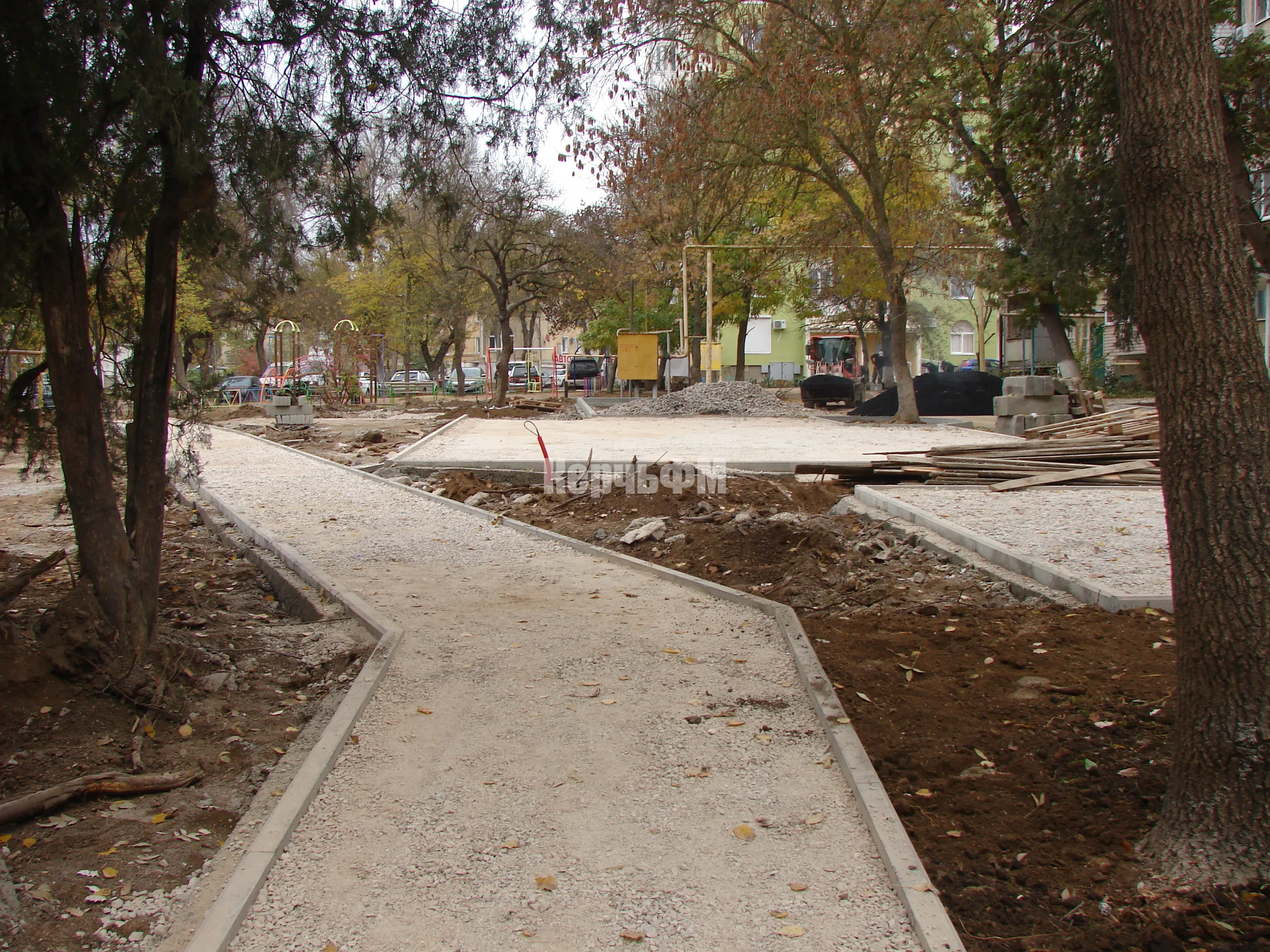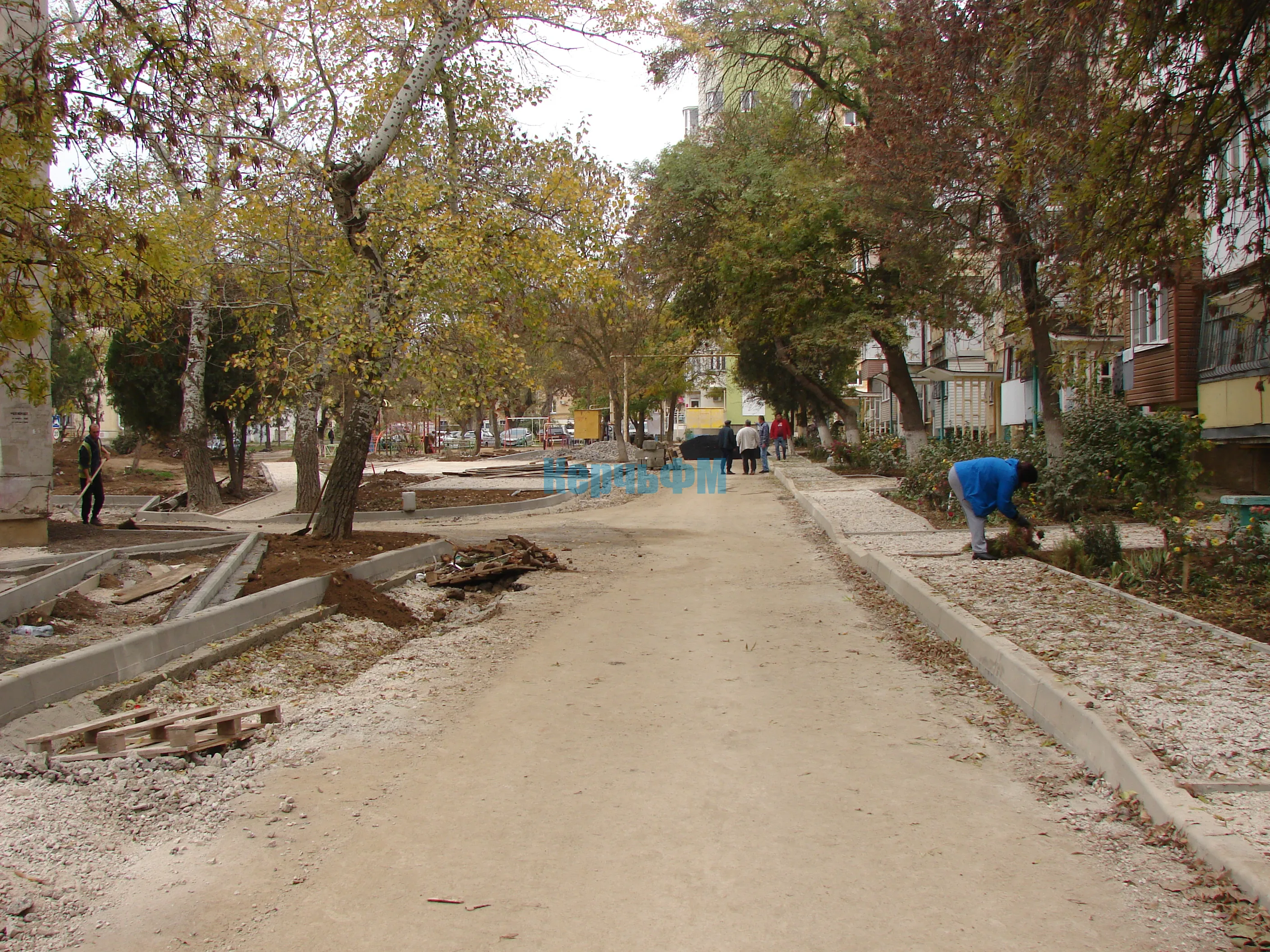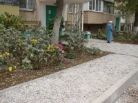 На этом объекте распланировали территорию под площадки, установили бордюры вдоль подъездных дорог и подходов к подъездам, а также вдоль новых пешеходных дорожек.