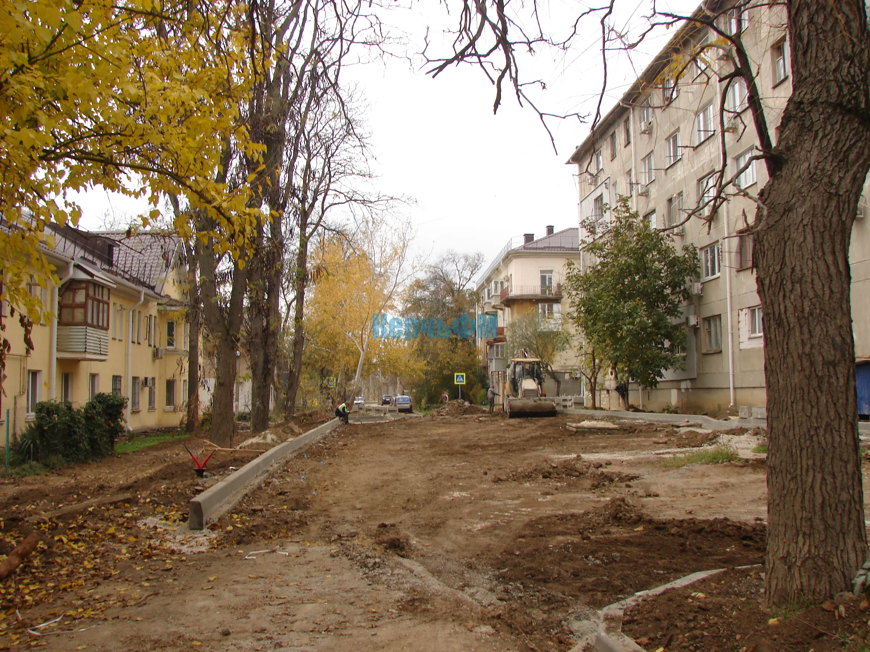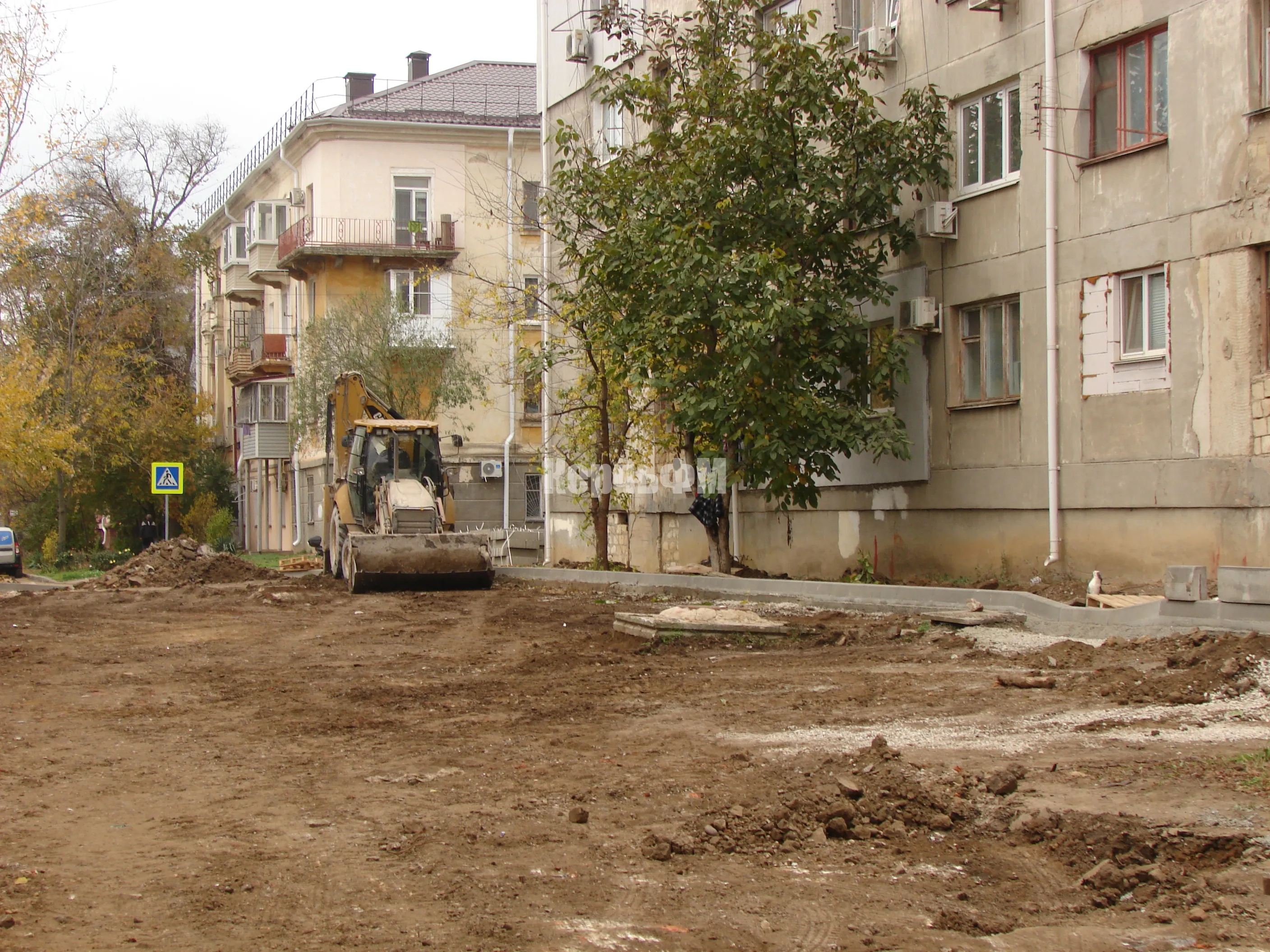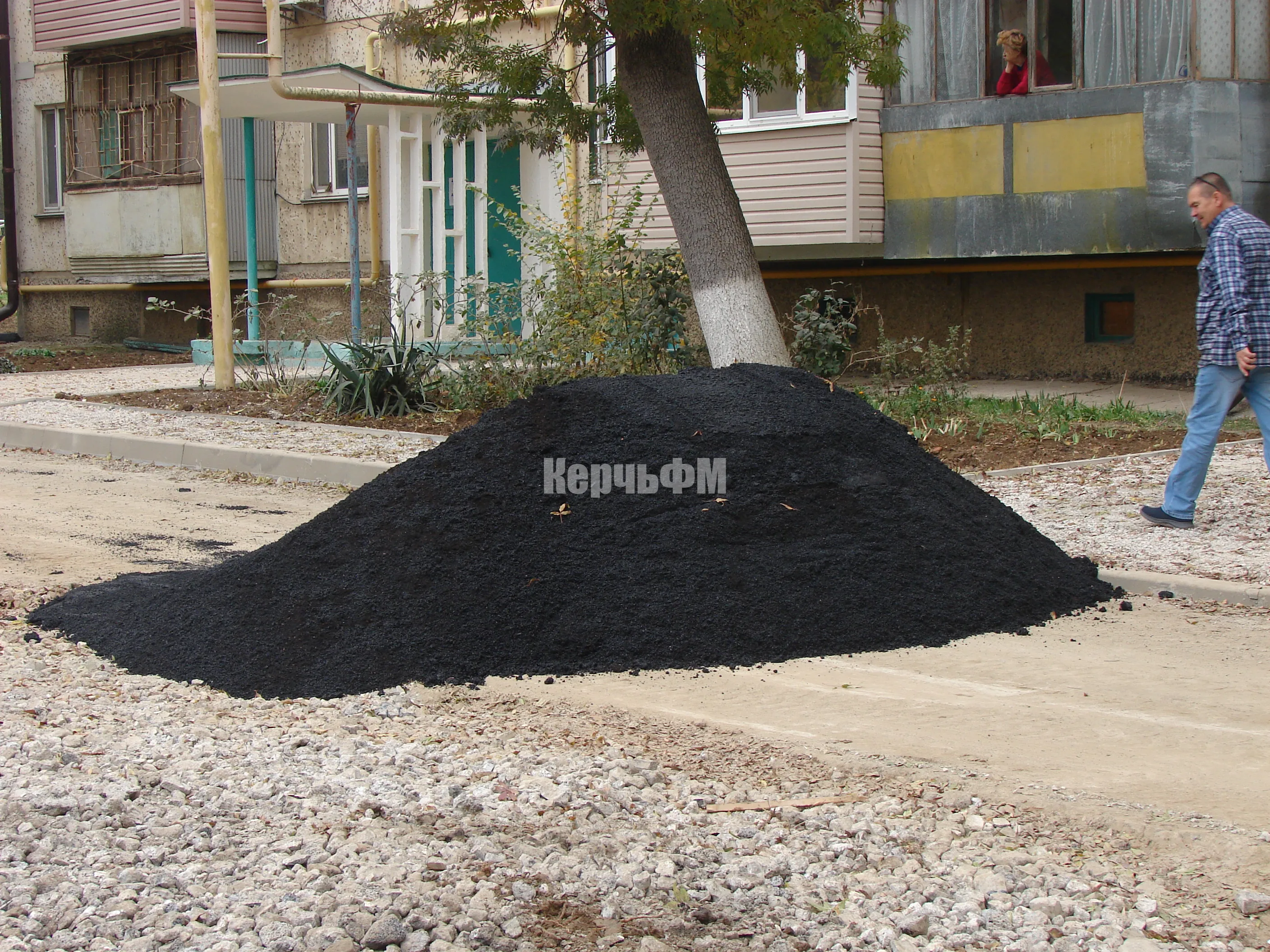Рабочие подрядчика разравнивают землю на газонах и готовятся к укладке асфальта, передает КерчьФМ.