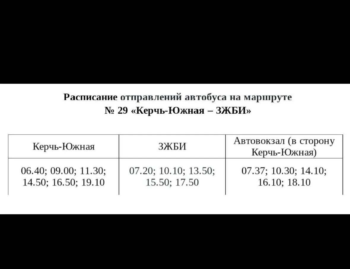 В Керчи с 17 ноября  в ТЕСТОВОМ режиме будет изменено расписание движения автобуса на муниципальном маршруте регулярных перевозок № 29 «Керчь-Южная - ЗЖБИ» (в утренние часы). Об этом сообщает пресс-служба администрации, - передает КерчьФМ