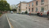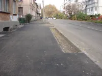 В выходные рабочие подрядчика завершили асфальтировку тротуара со стороны нечетной стороны домов.