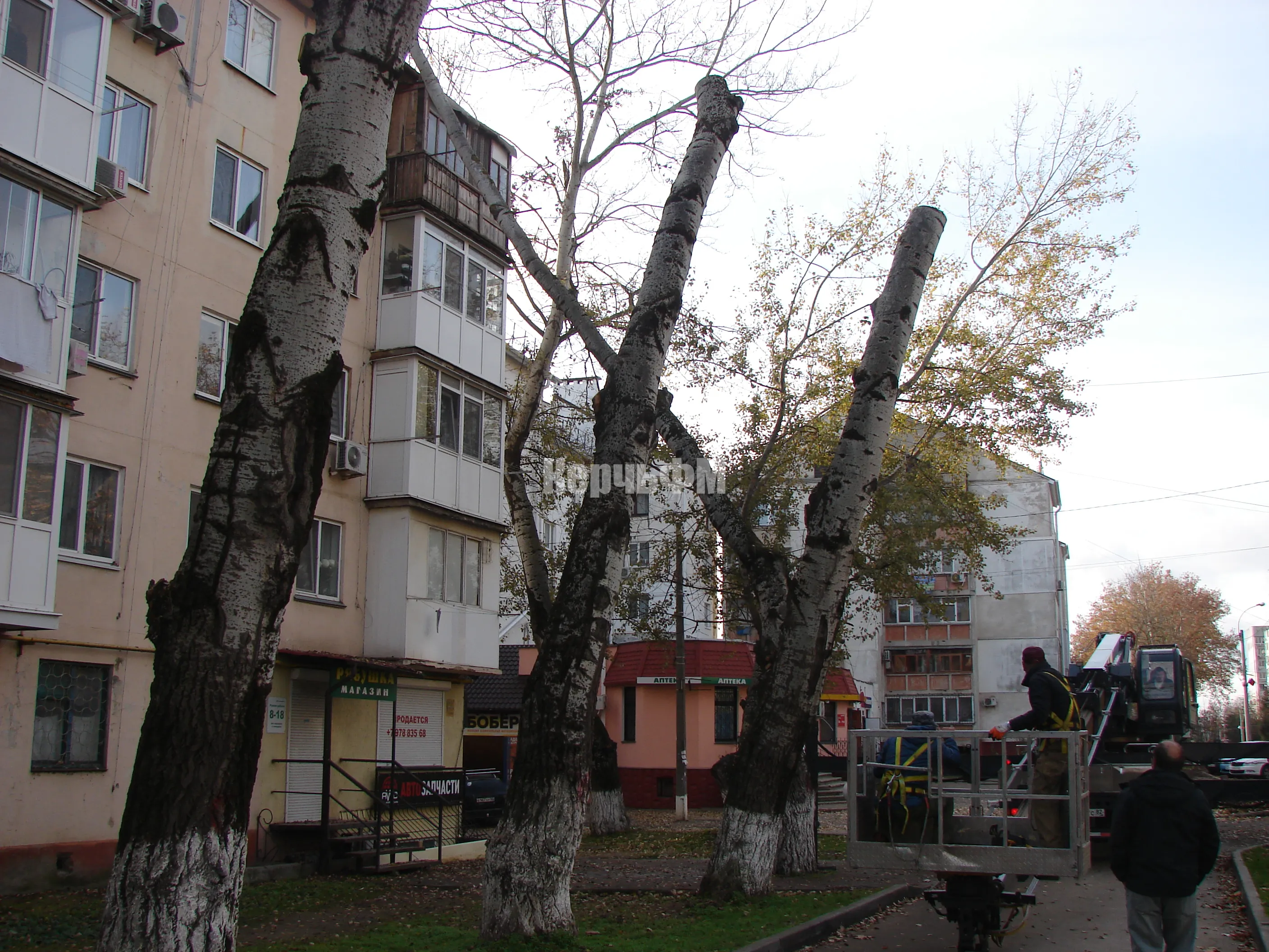 У дома по улице Горького, 22 некоторое время назад провели кронирование высоких тополей.