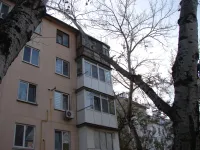 Оставшийся ствол одного из деревьев во время сильного ветра наклонился к дому так, что грозил обрушиться на кровлю пятиэтажного МКД.
