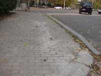Жители домов по 2-му Портовому переулку отмечают, что плитку на отрезке тротуара у здания, где находится банк, положили неправильно.