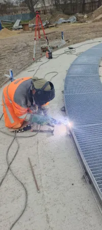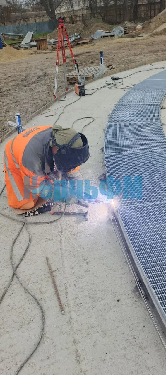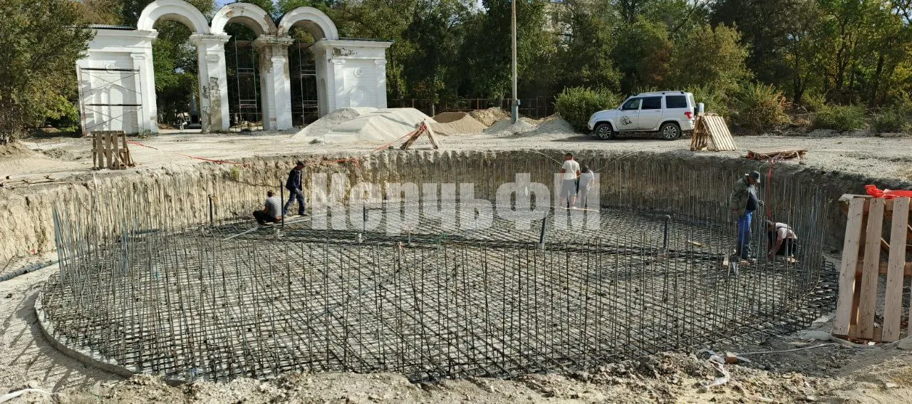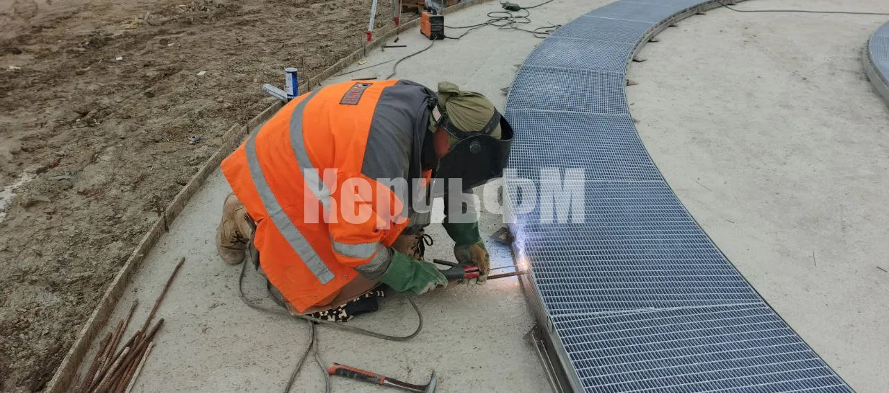 Специалисты приступили к разметке и монтажу решёток на дренажные каналы нового фонтана в Приморском парке.