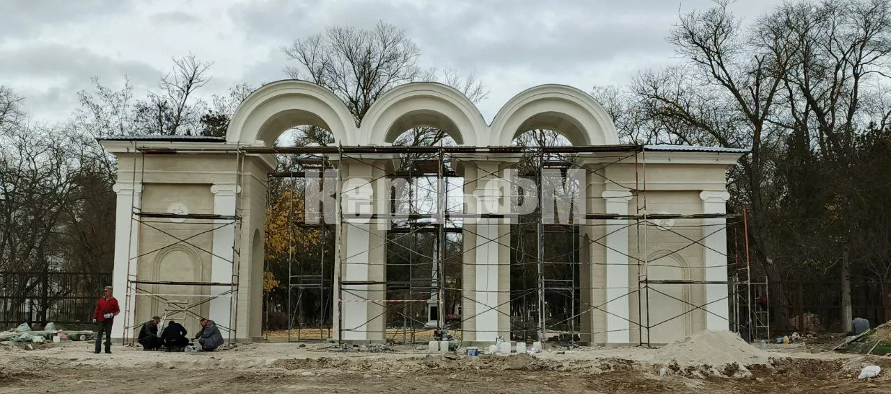 Капитальный ремонт арки на центральном входе подходит к концу, завершаются отделочные работы, передает КерчьФМ.