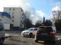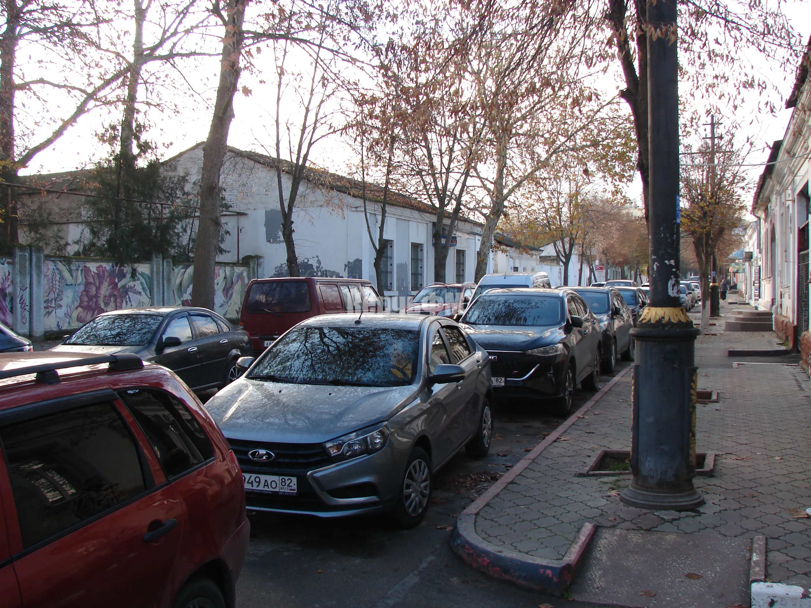 Машины припаркованы и слева, и справа узкой дороги, передает КерчьФМ.