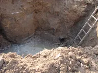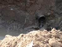 Работы были начаты, но потом остановились. Разрытая яма с водой, по словам специалистов, ведущих ремонт дороги, стоит уже две недели.