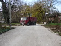 В настоящее время дорожники завершают утрамбовку щебня от дома №11 до пресловутой ямы с водой.