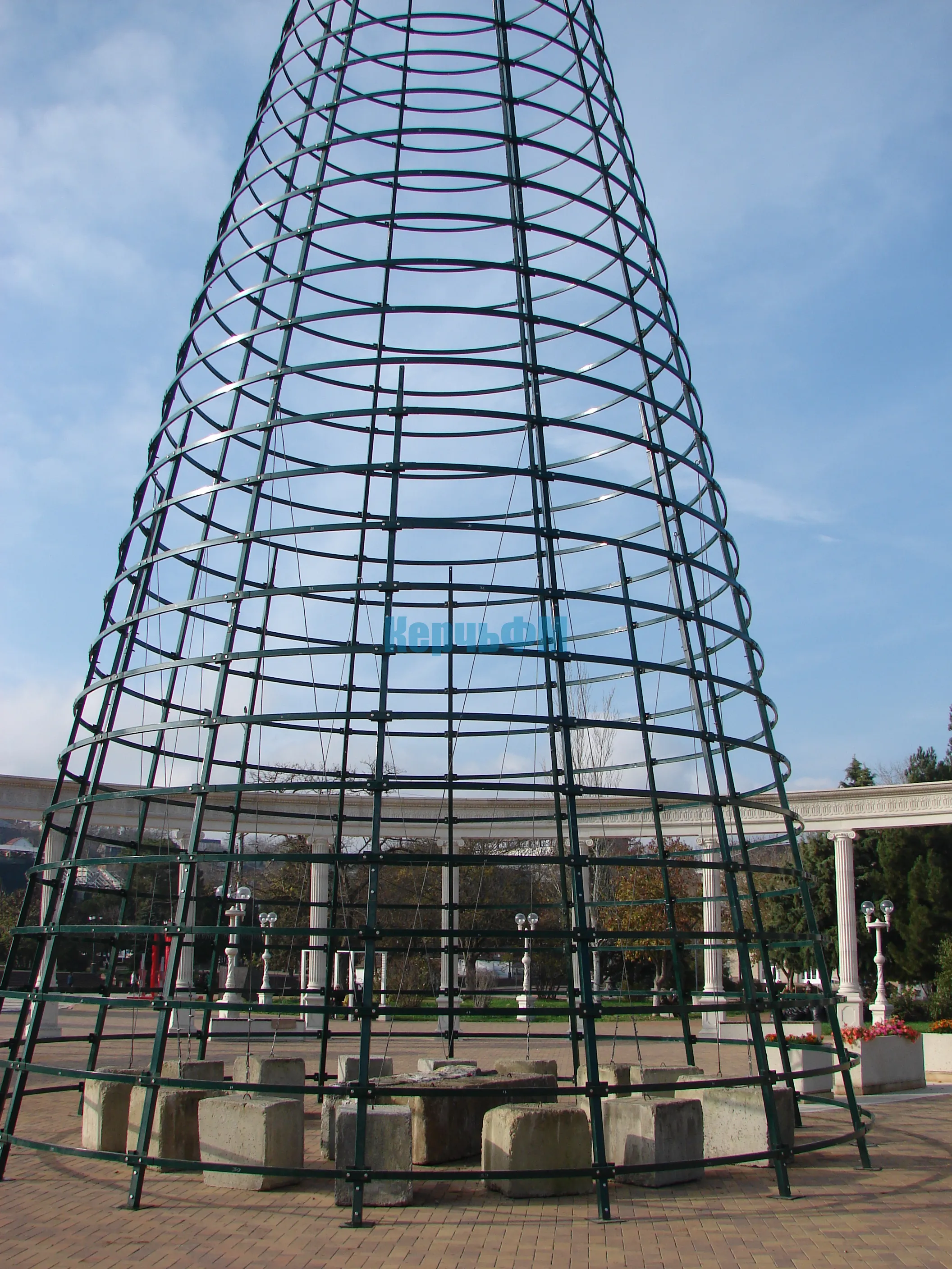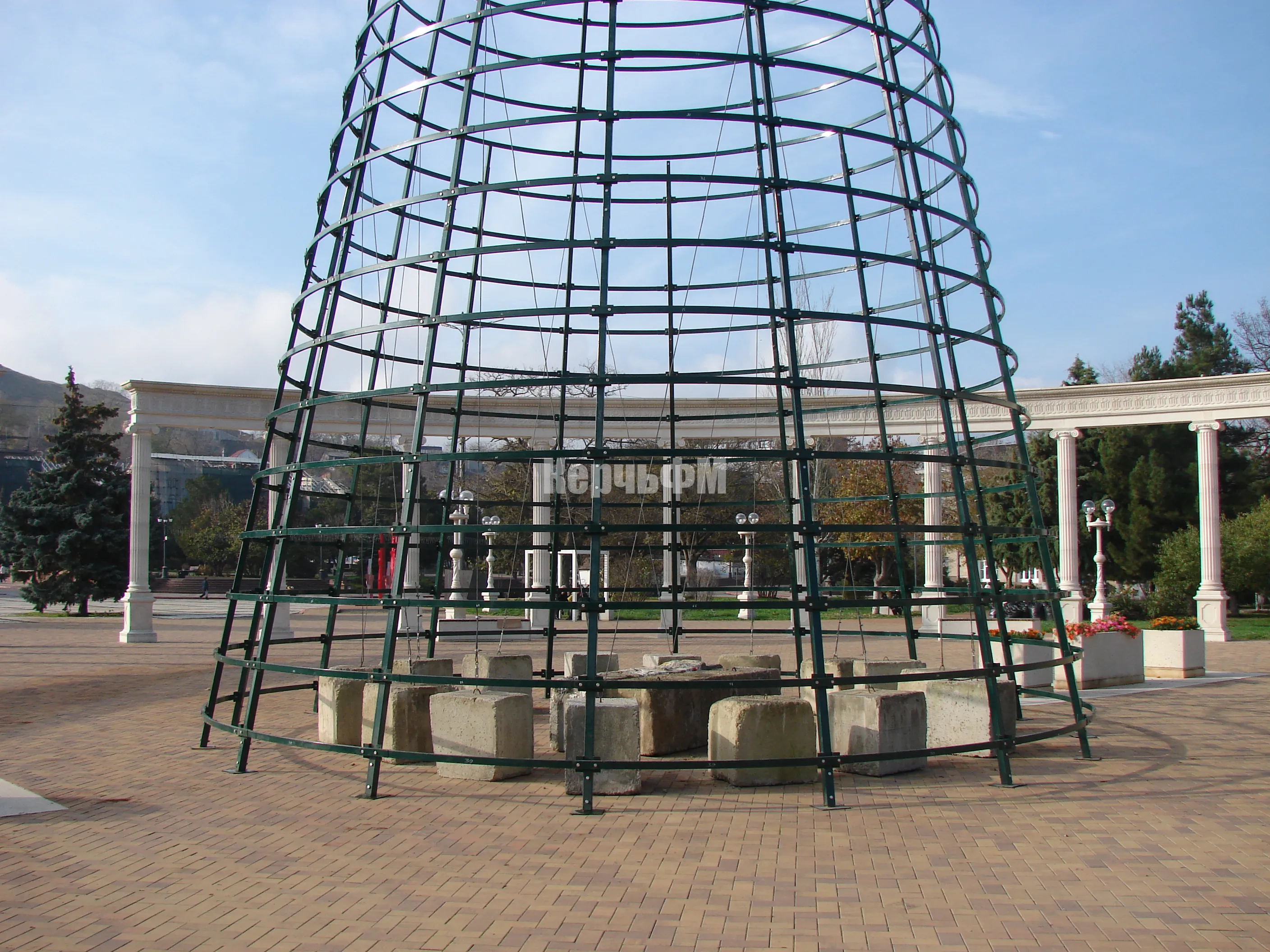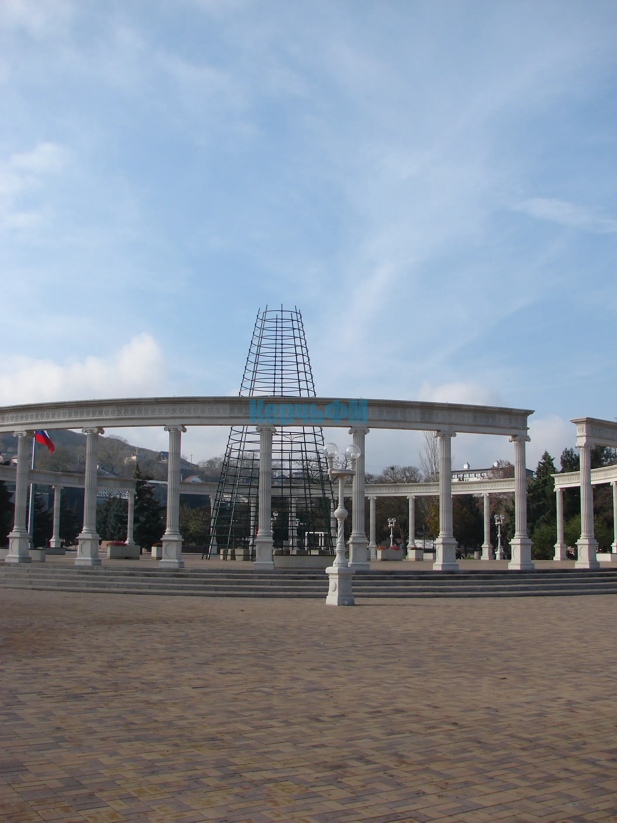 В Керчи продолжают наращивать каркас будущей новогодней елки.