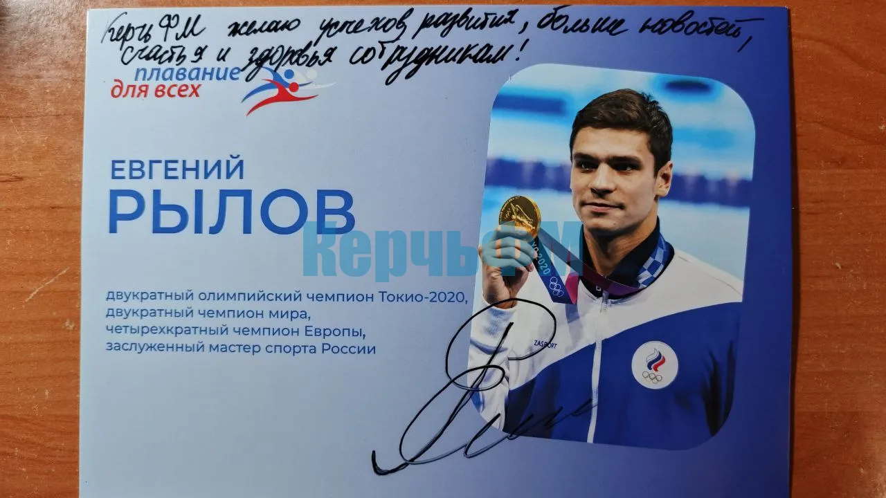 Именитый спортсмен подписал свою фотографию с пожеланиями и автографом КерчьФМ.