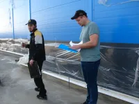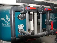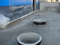 Выполняются работы по монтажу светодиодных прожекторов для освещения бассейна.
