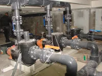 В техническом этаже продолжается монтаж систем фильтрации воды. Параллельно монтируется система вентиляции и отопления.