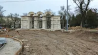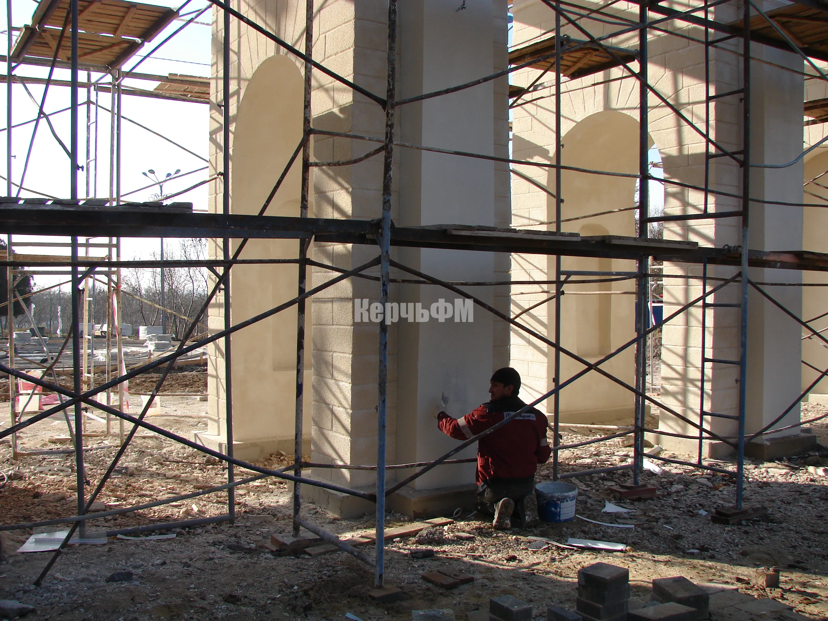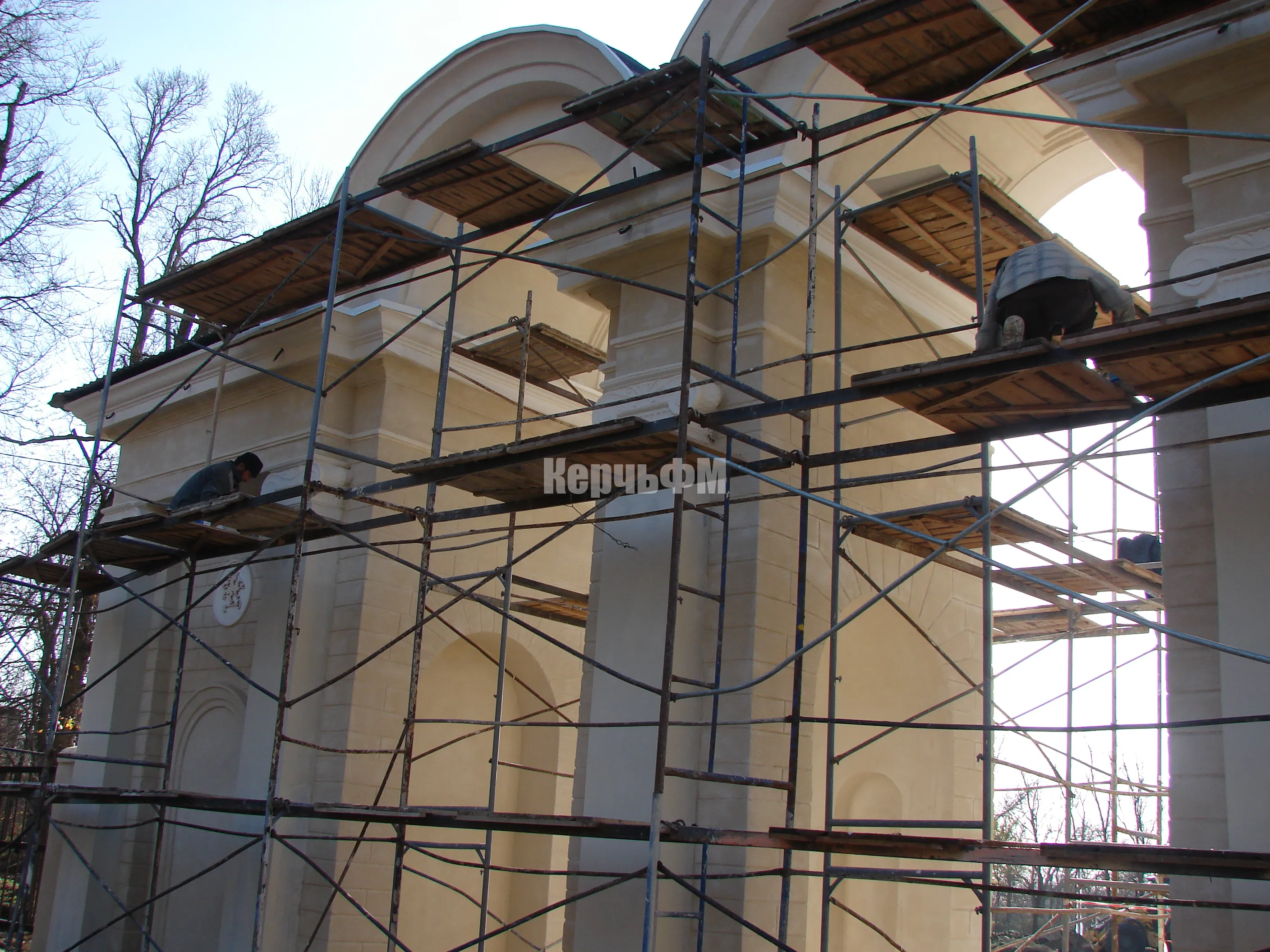 На входную арку нанесли декоративную штукатурку.