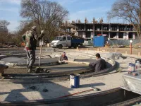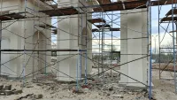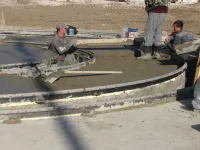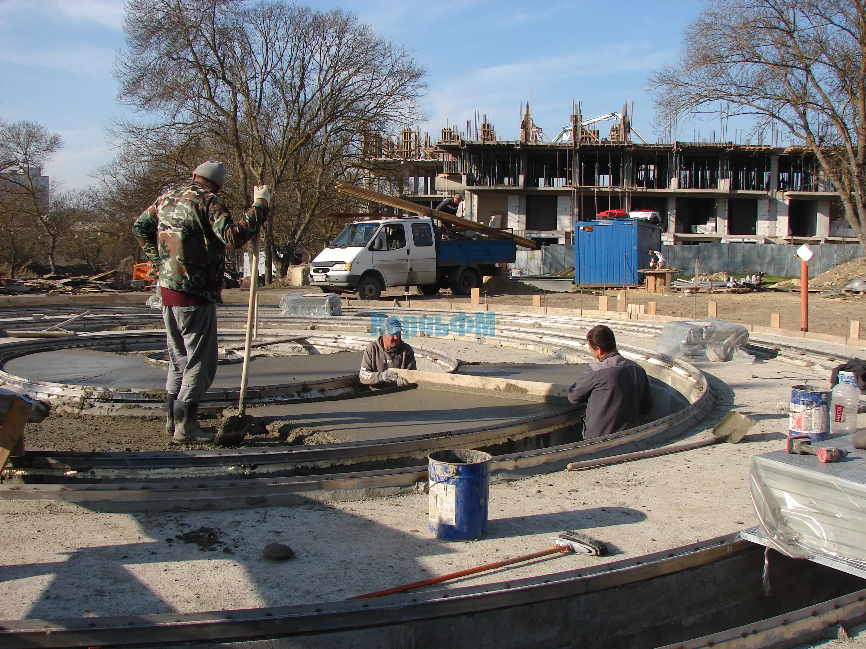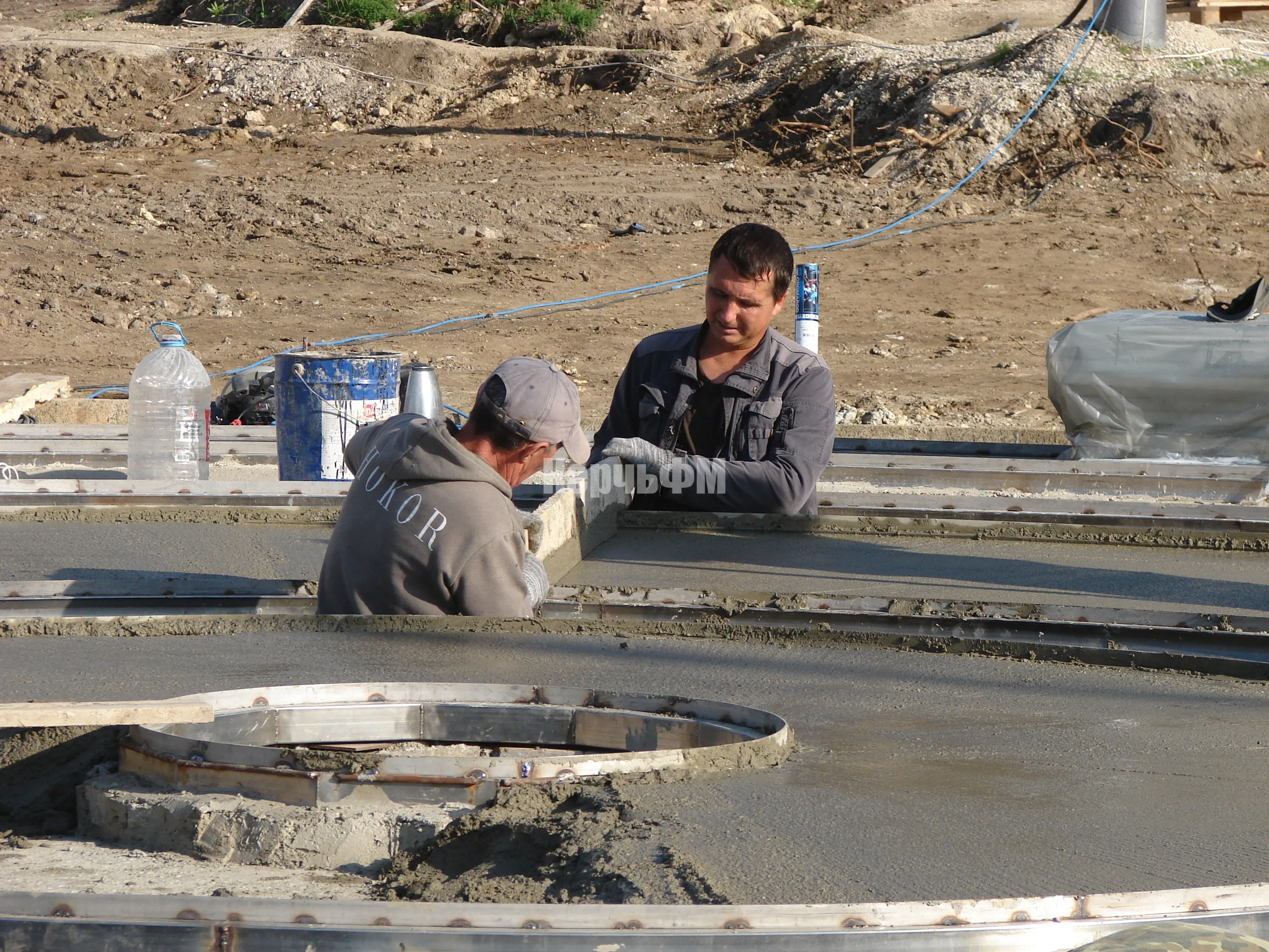 В выходные дни строители сделали заливку выравнивающей стяжки.