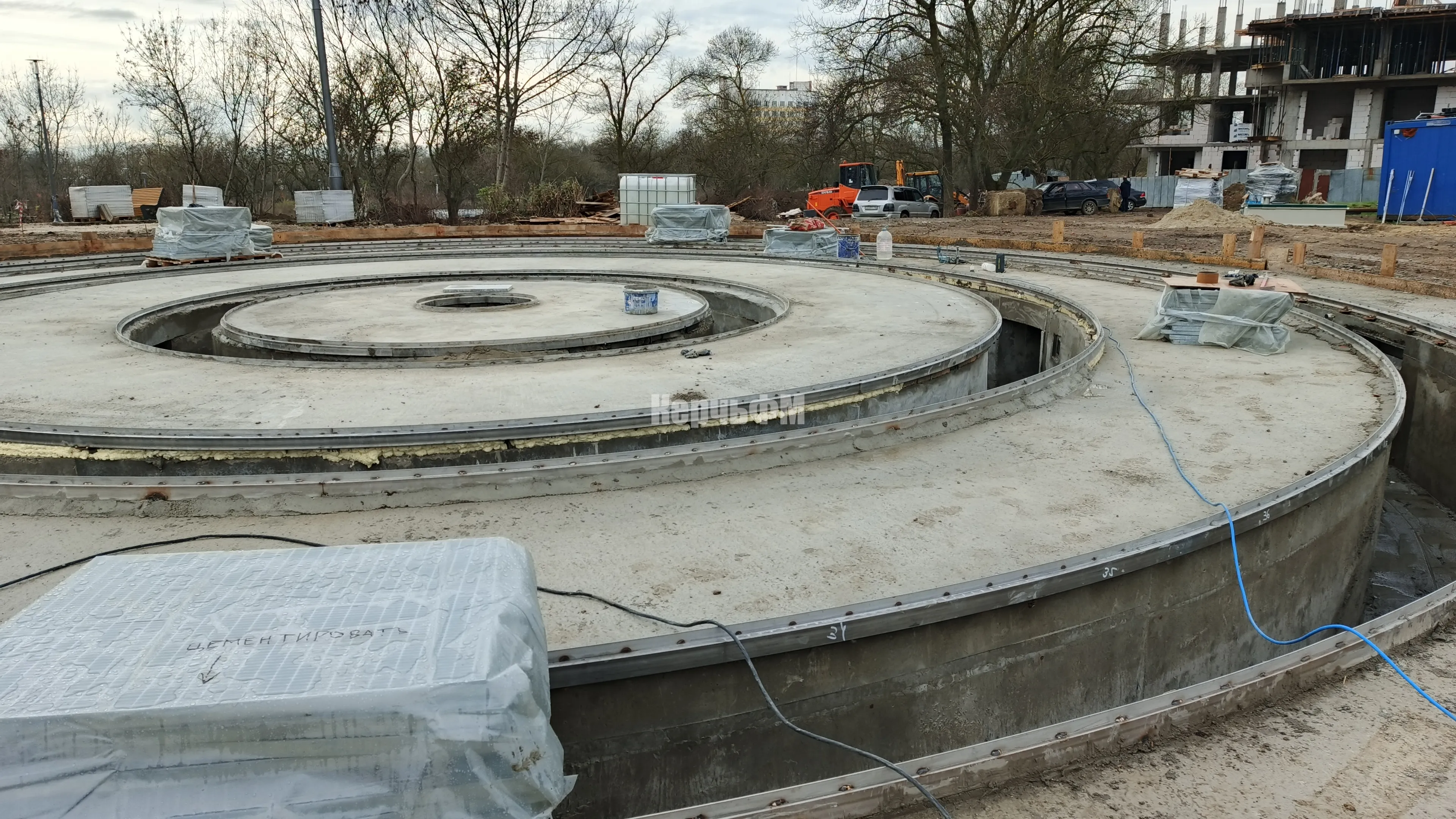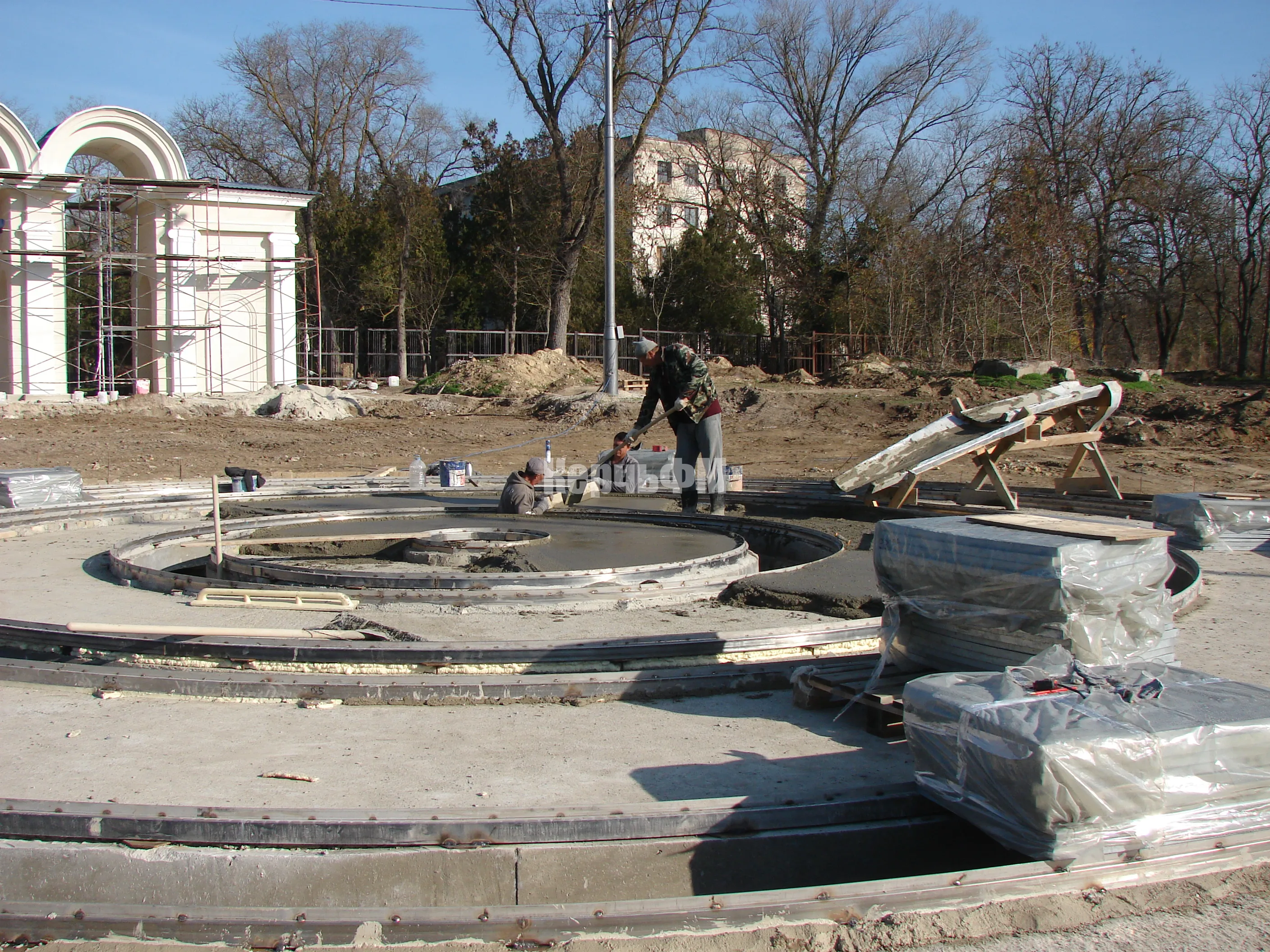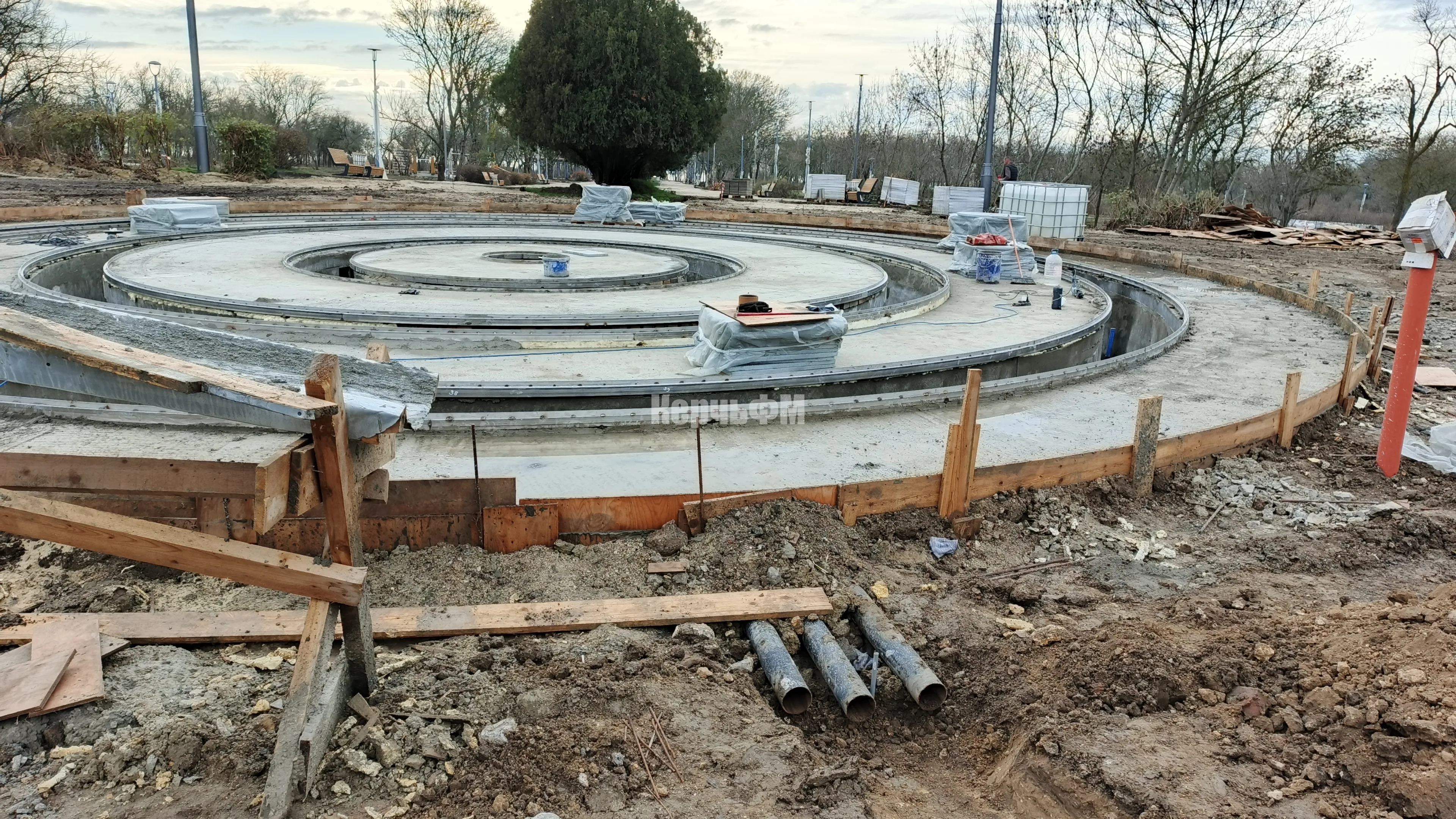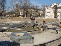В Приморском парке продолжаются работы по устройству фонтана.
