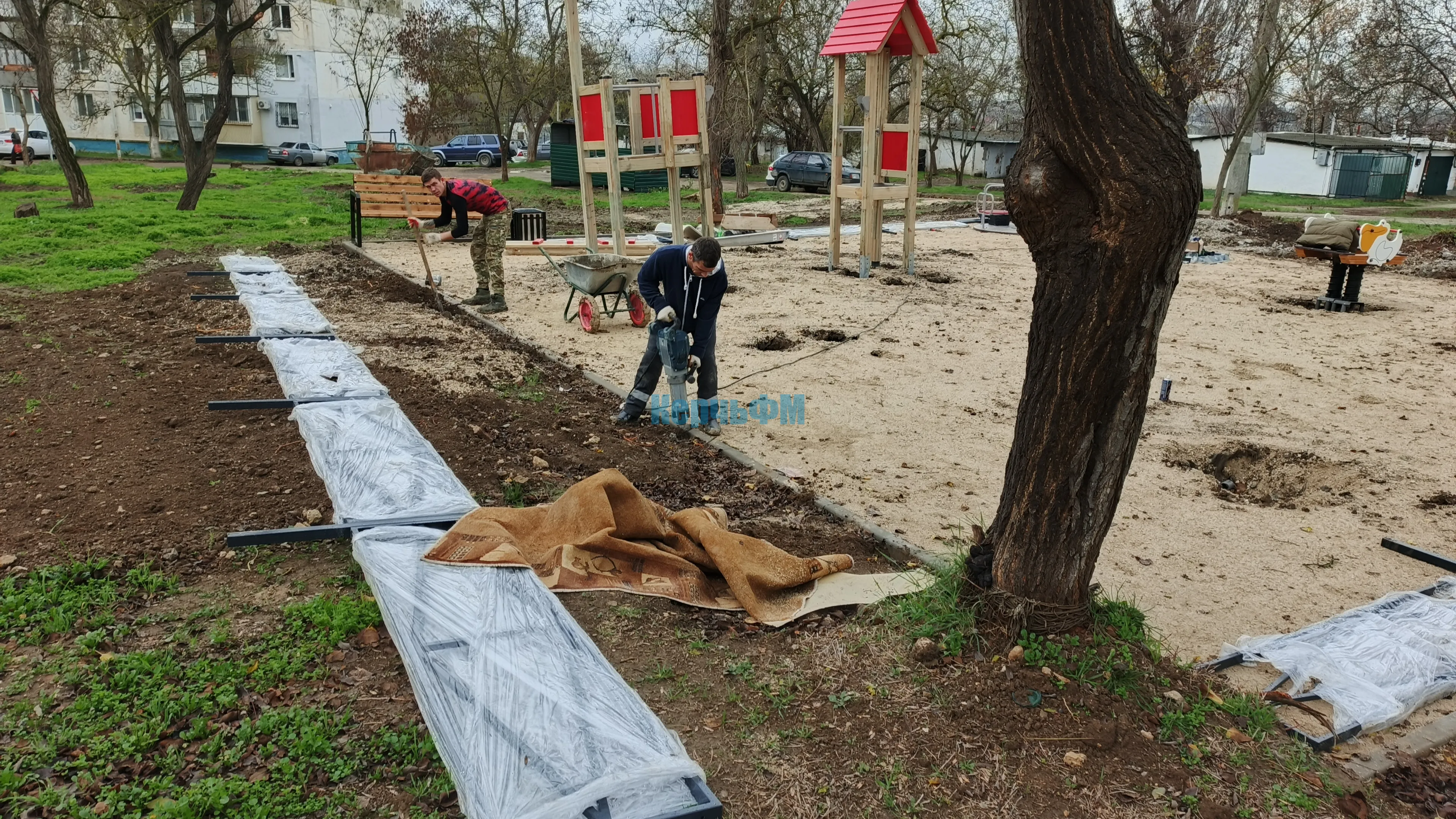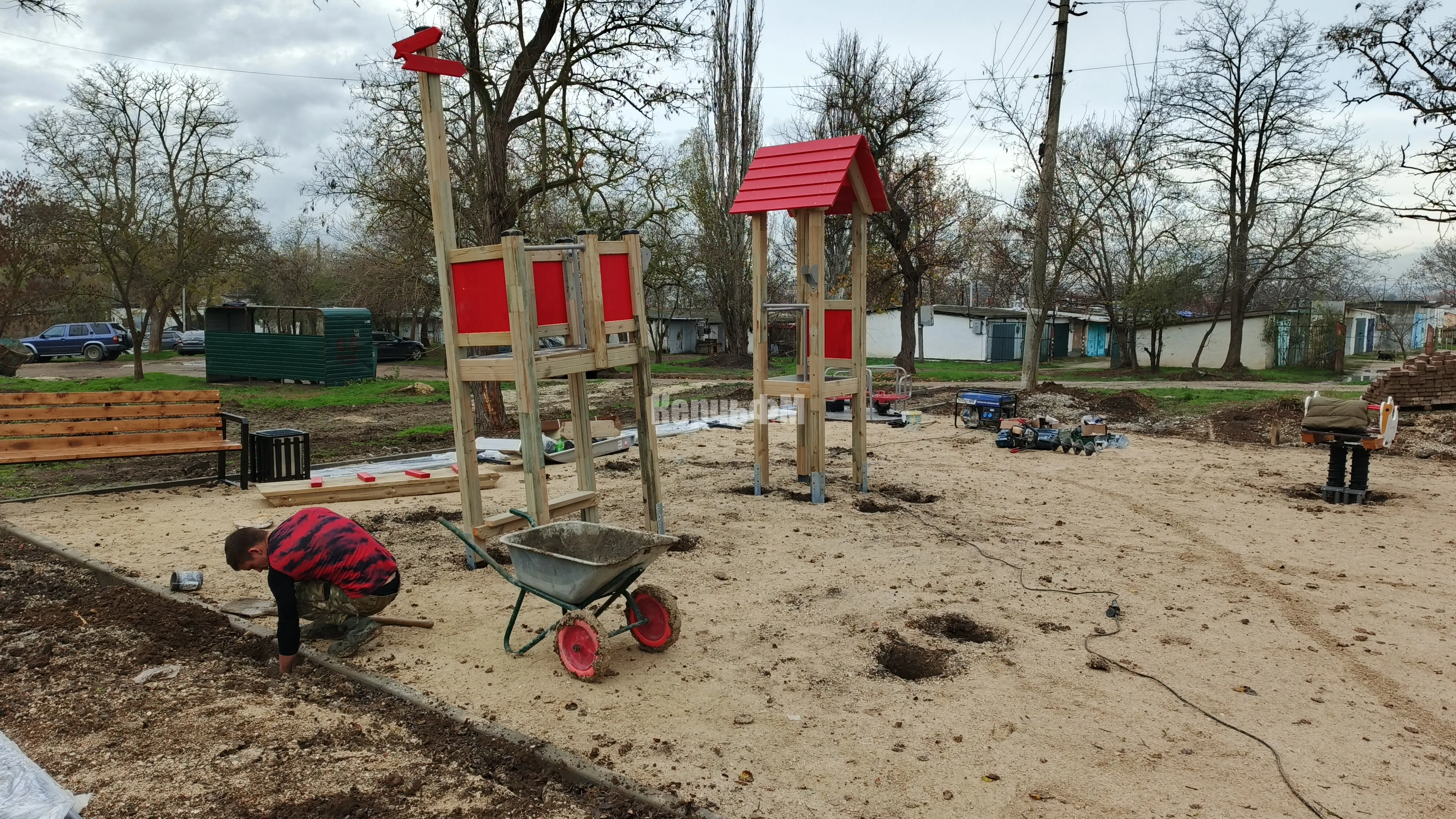 Подобные работы идут и во дворе по ул. Казакова, 51. Здесь завершается сборка 7 элементов для детей разного возраста.