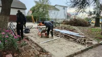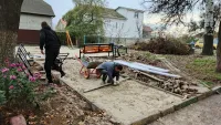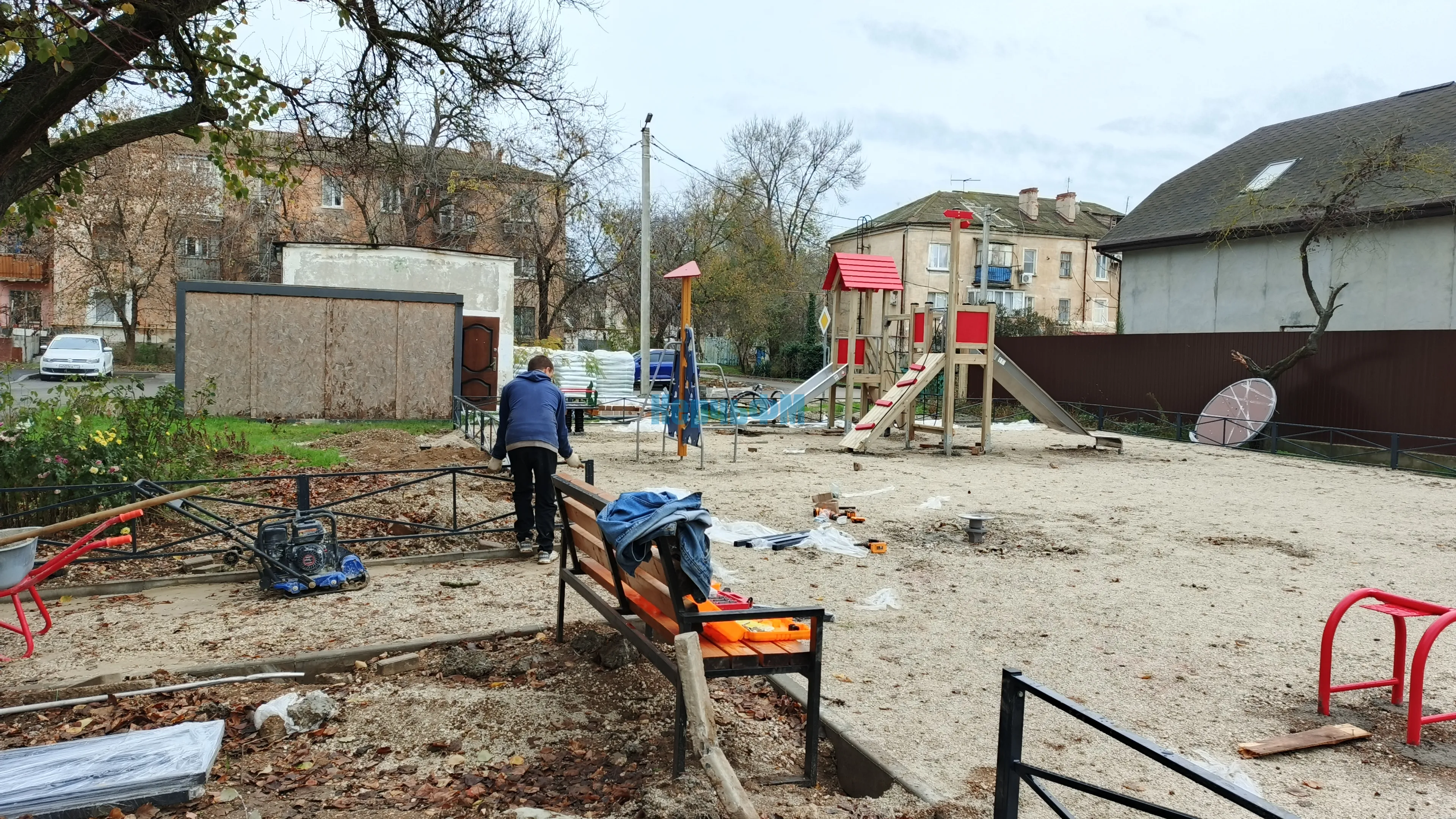 Новую детскую площадку устанавливают во дворе дома по Голощапова, 14.