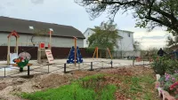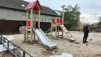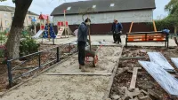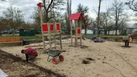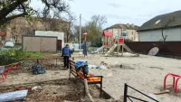 На новых площадках строители в начале обустраивают новое основание, отсыпают его щебнем и песком. После того как будут смонтированы игровые элементы, уложат безопасное резиновое покрытие. По периметру будет установлено ограждение.