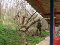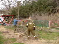 Специалисты Службы городского хозяйства расчищали сегодня территорию на нижнем ярусе зоны отдыха Сморжевского.