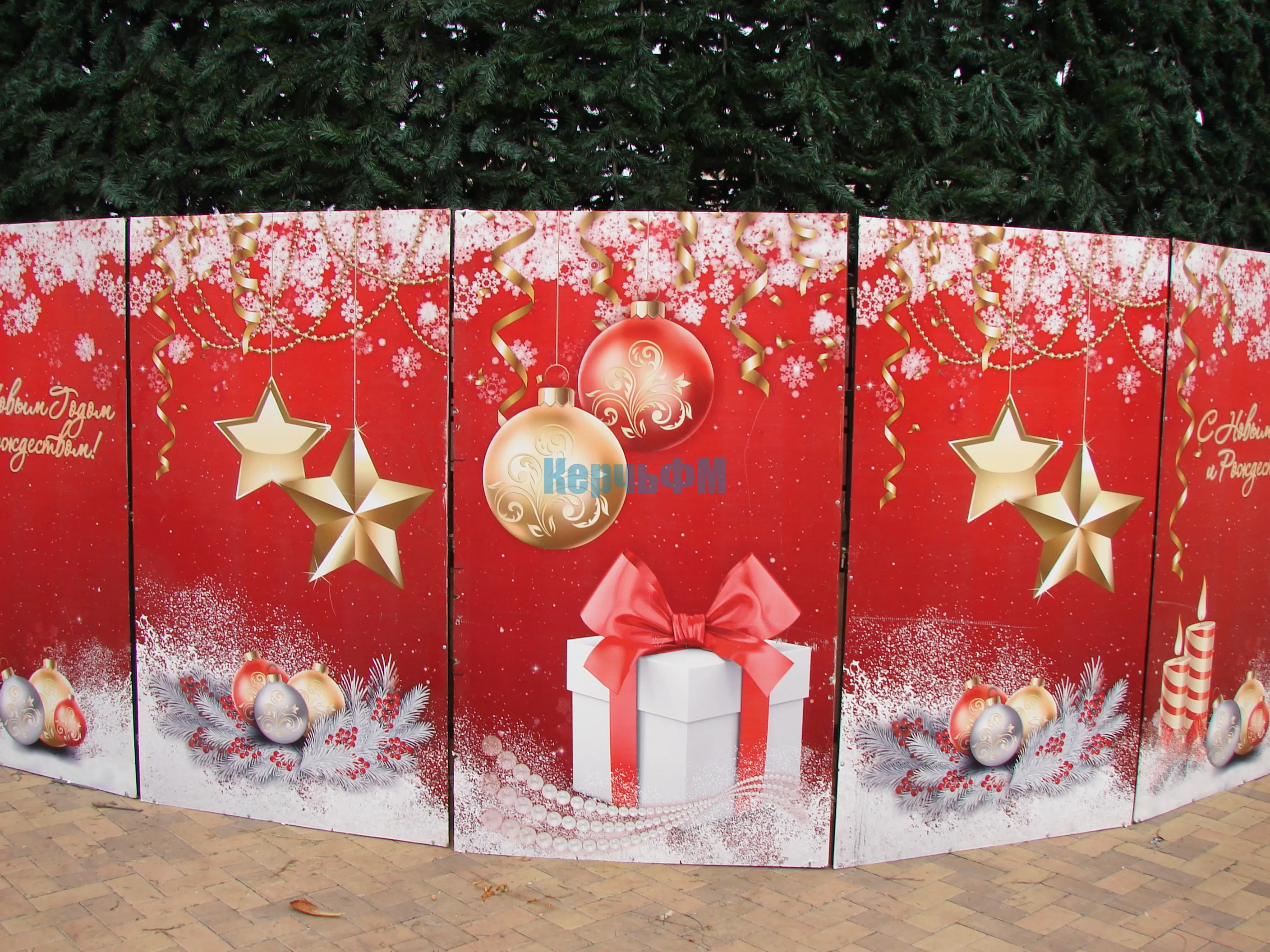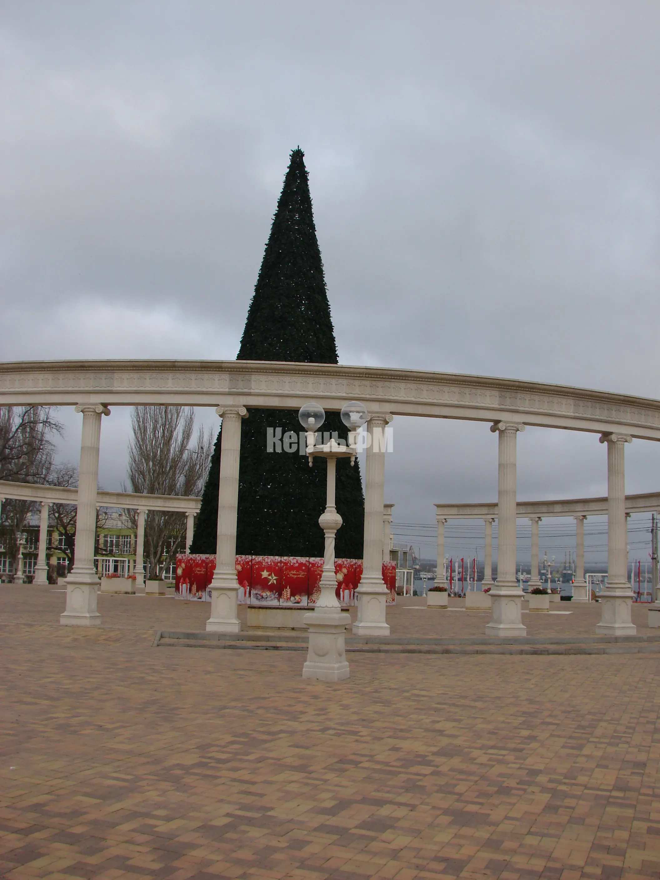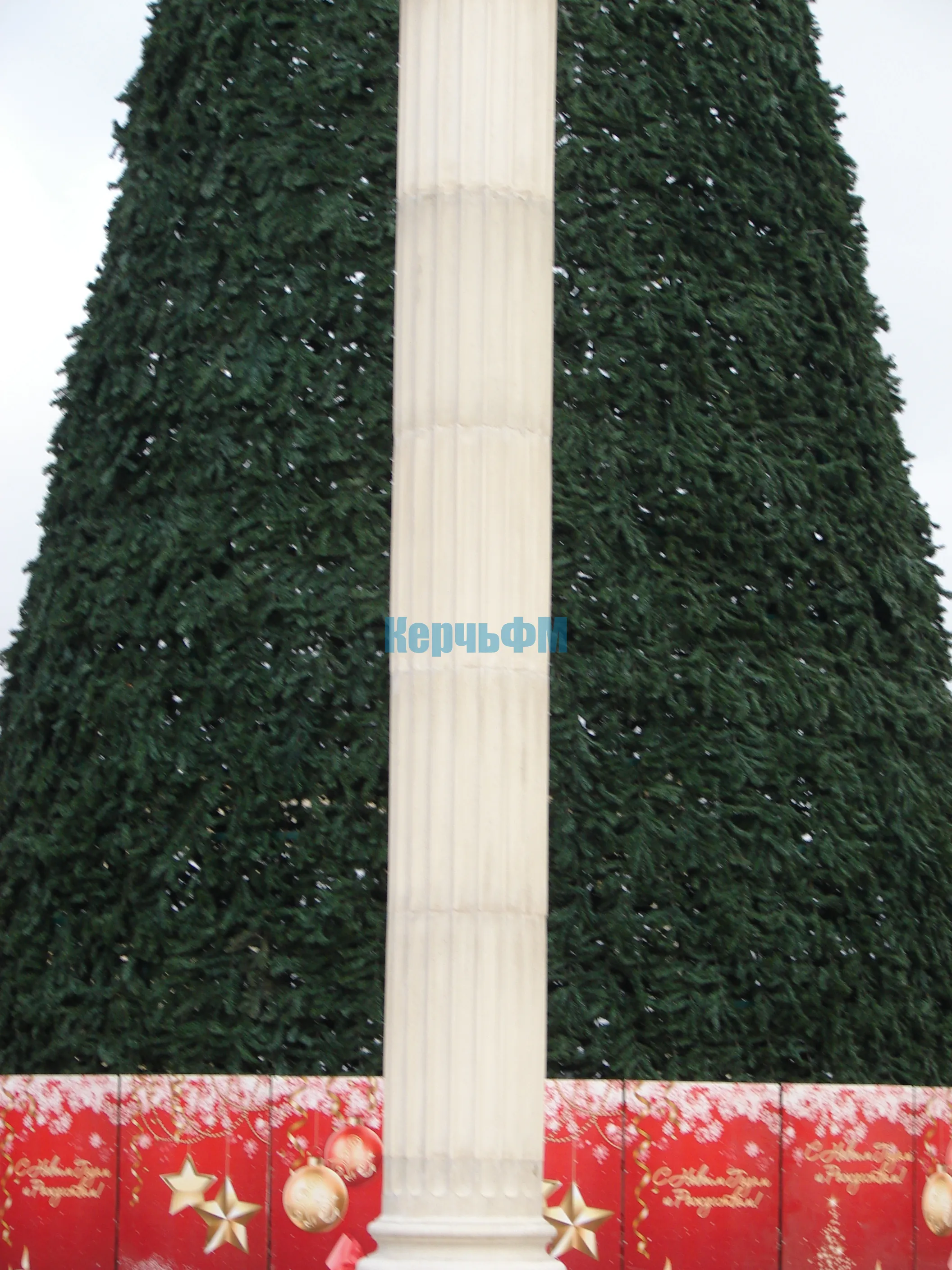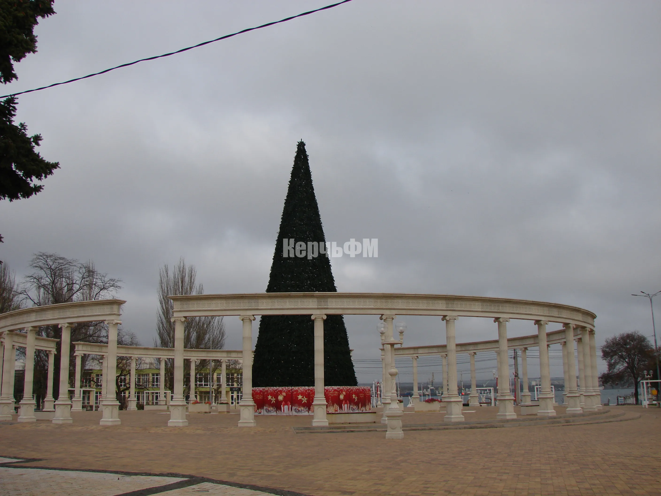Каркас новогодней елки в центре Керчи одели в хвойный наряд