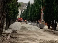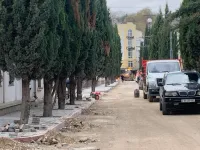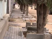 На улице Циолковского укладка плитки на тротуарах продолжается.