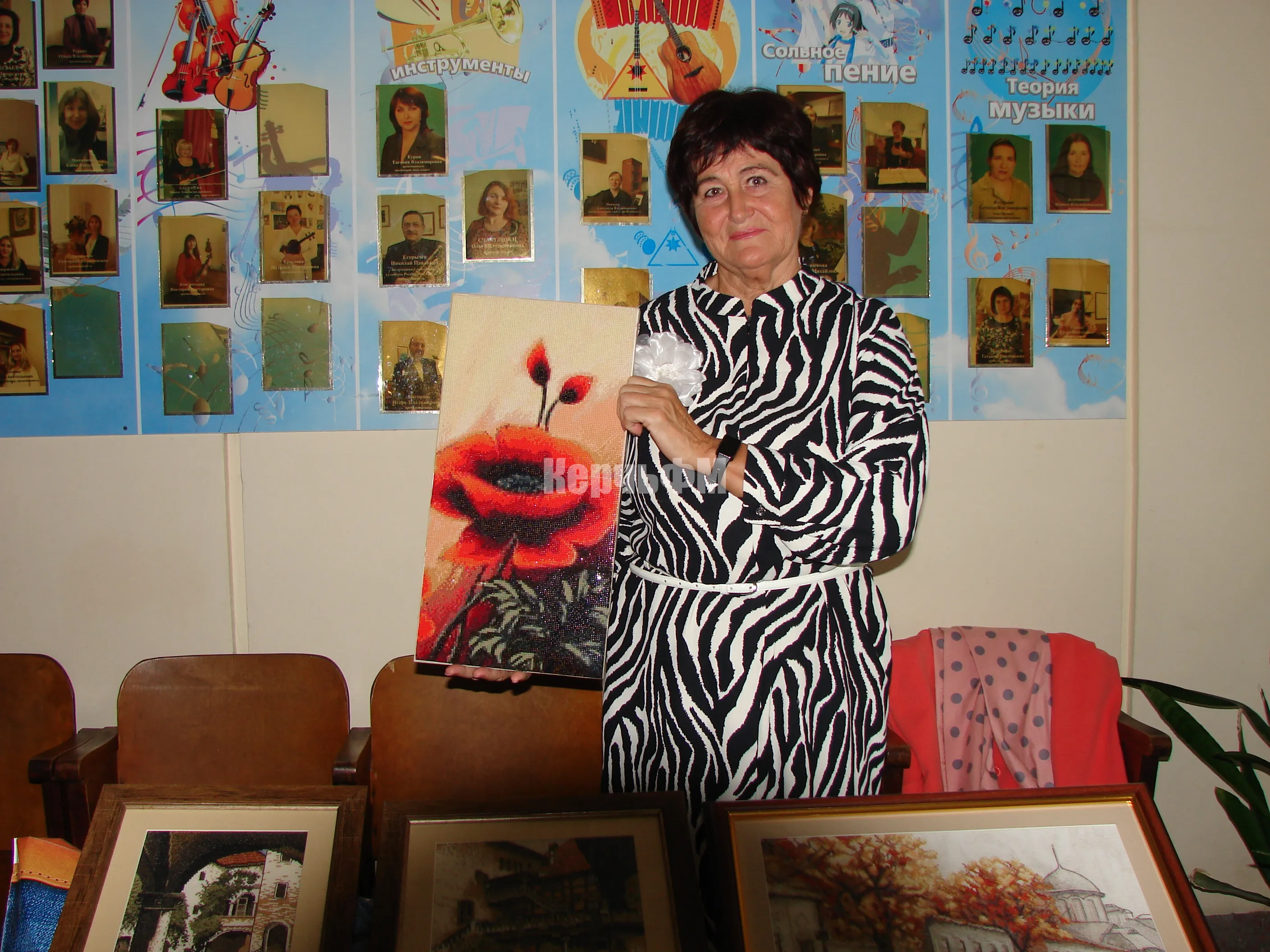 В прошлом озеленитель, она вышивает картины крестиком с пейзажами московских старых двориков, которые напоминают старую Керчь.