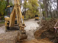 Керченский филиал ГУП РК "Вода Крыма" сегодня ликвидирует свое разрытие в месте постоянных порывов на пересечении улицы 12 Апреля с улицей Энгельса.