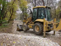 Щебень засыпан и выровнен везде, кроме начала дороги.