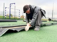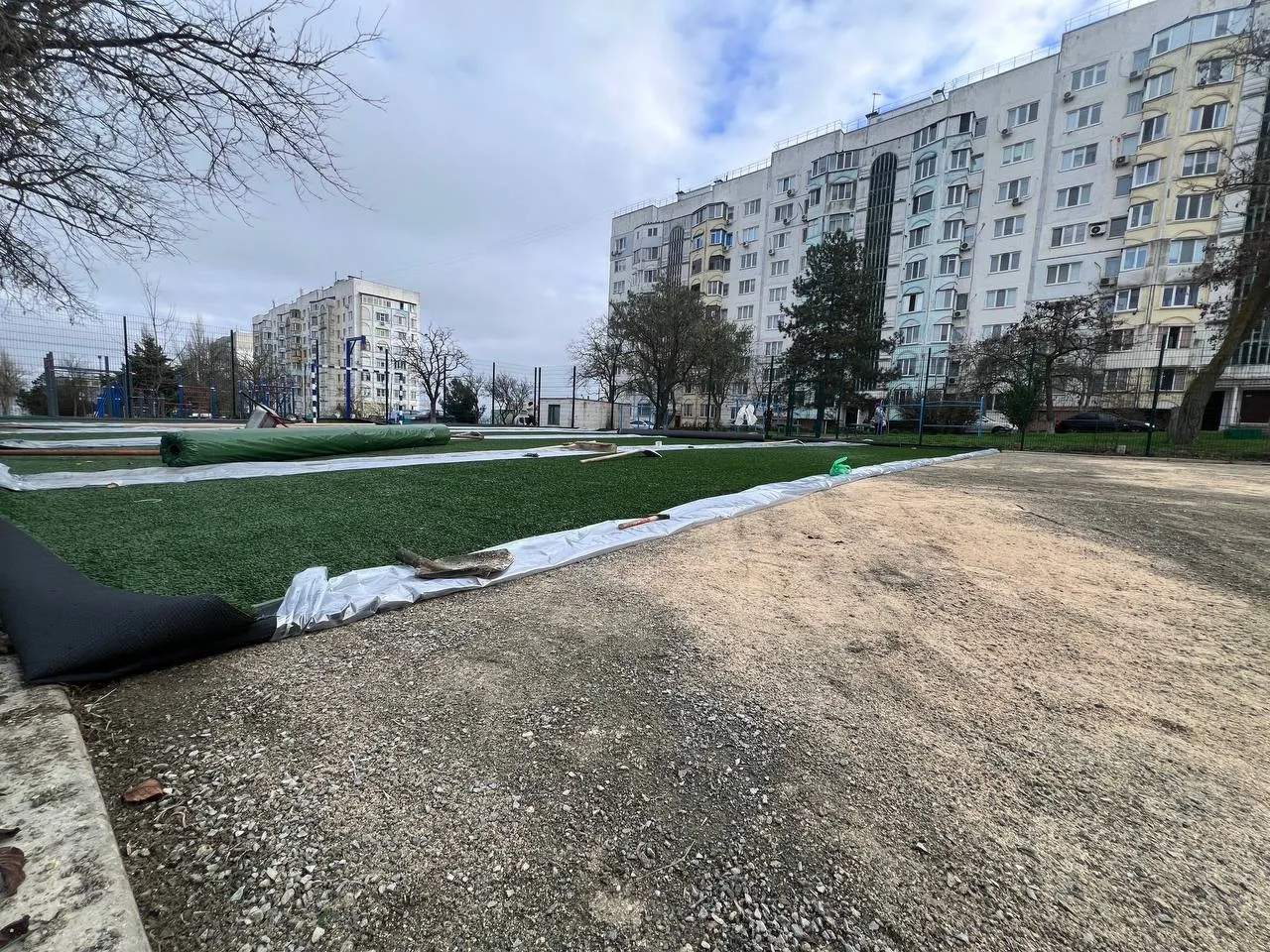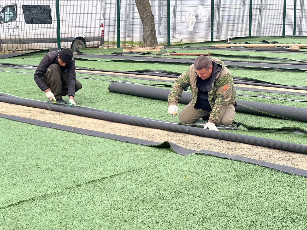 На спортивной площадке по шоссе Героев Сталинграда, 56 приступили к укладке современного искусственного газона. Продолжается комплексный ремонт футбольного поля, включающий замену ограждения площадки, установку новых футбольных ворот и опор для баскетбольных щитов. Завершив монтаж покрытия, специалисты приступят к установке самих щитов и колец, а также навесят сетки на ворота. Об этом сообщает пресс-служба администрации, - передает КерчьФМ