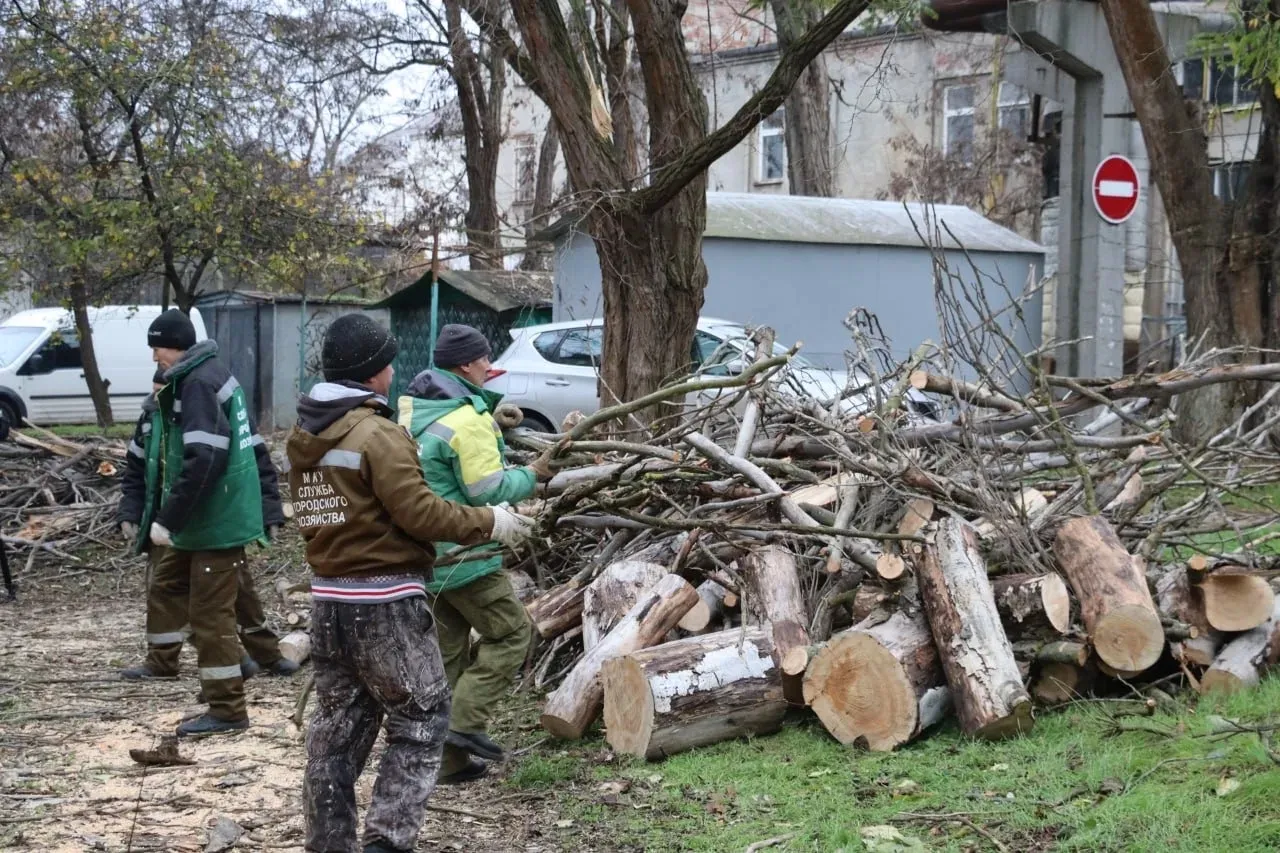 Упавшие ветви и деревья, в первую очередь, убирают с проезжей части, с общественных территорий и во дворах, распиливают стволы, убирают и вывозят ветки.