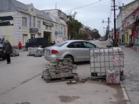 Далее работы по обновлению тротуаров ведутся с обеих сторон улицы.