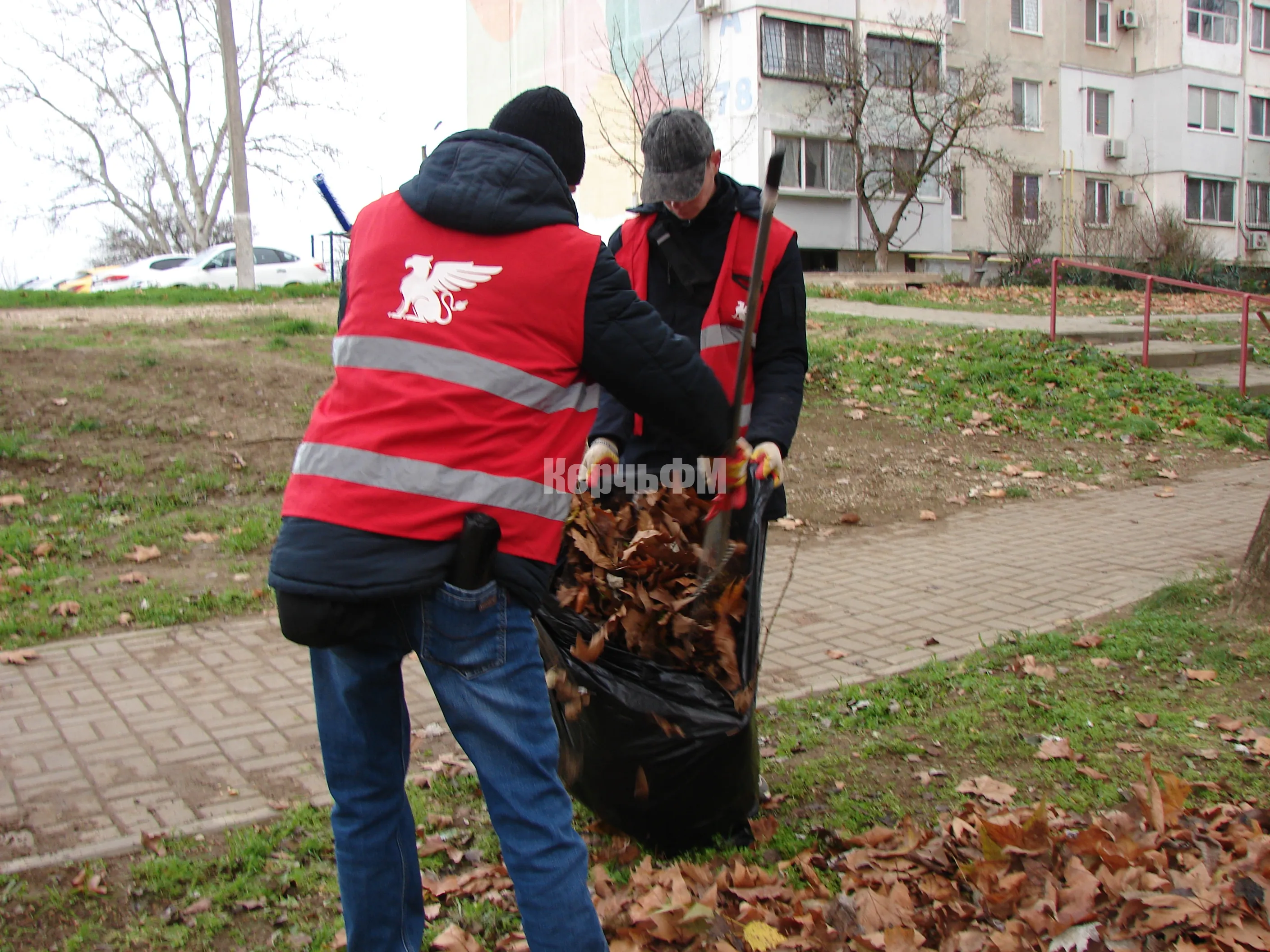 "Красные жилеты" трудятся в самых разных районах Керчи, не забывая про парки, скверы и внутридомовые территории.