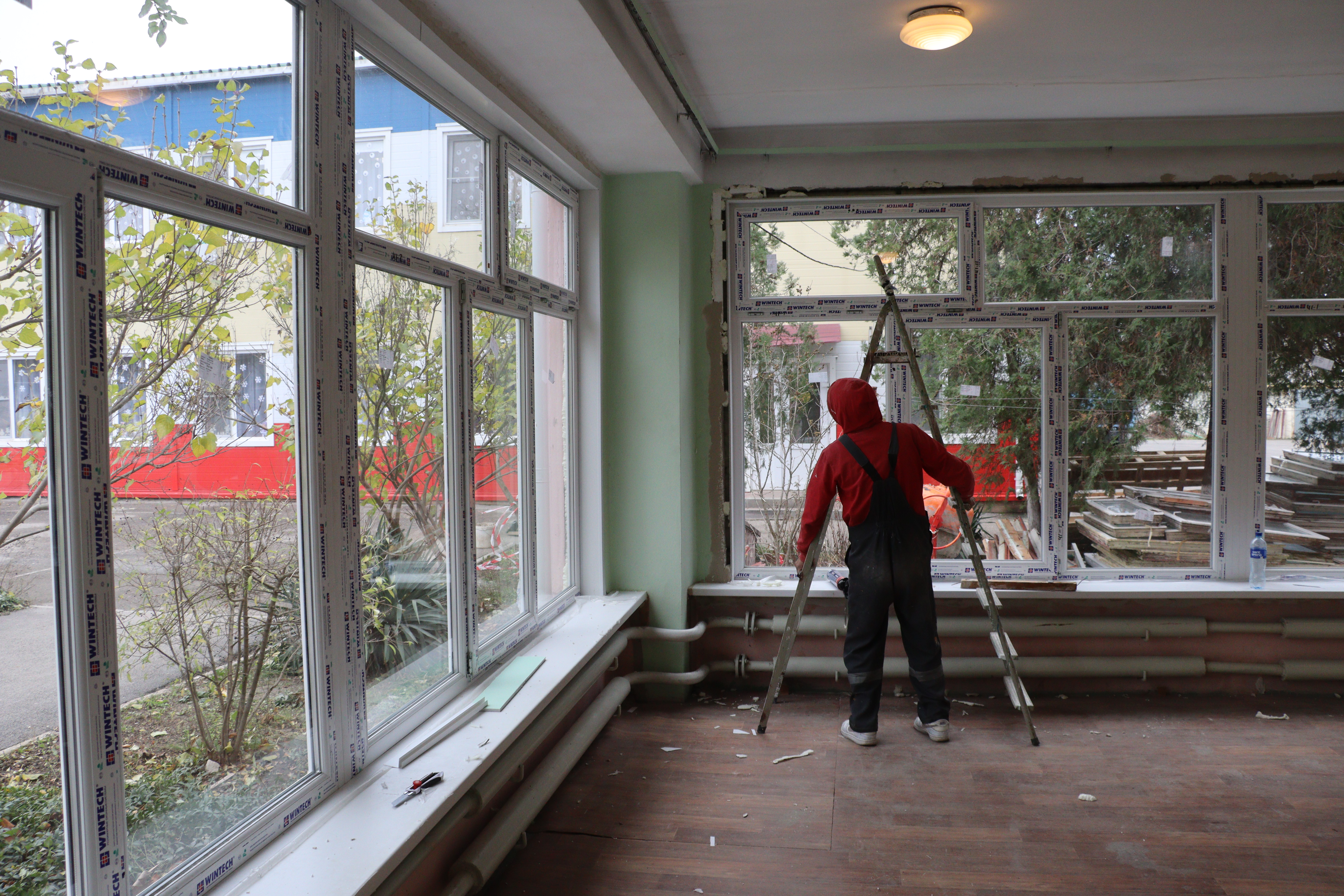 Подобных обновлений здесь не было с момента постройки здания в 1978 году. Теперь в группах и спальнях появятся 40 новых больших ПВХ-конструкций. Каждая из них оборудована системой безопасности, чтобы малыши не могли самостоятельно открывать окна. Строительные работы также включают в себя установку подоконников и откосов.