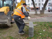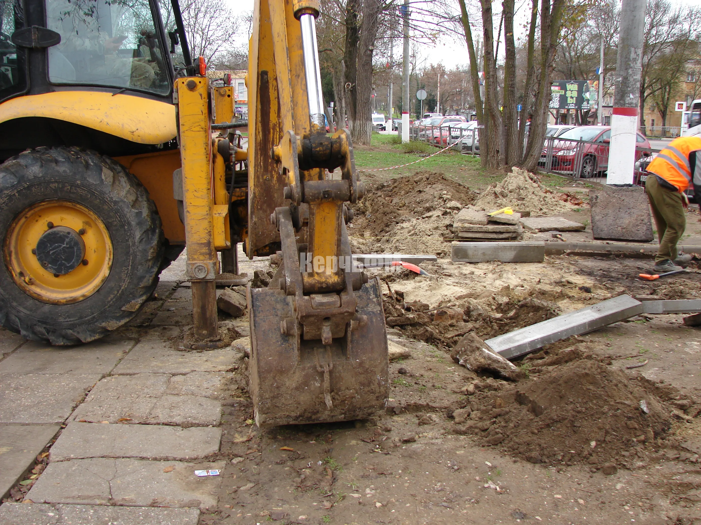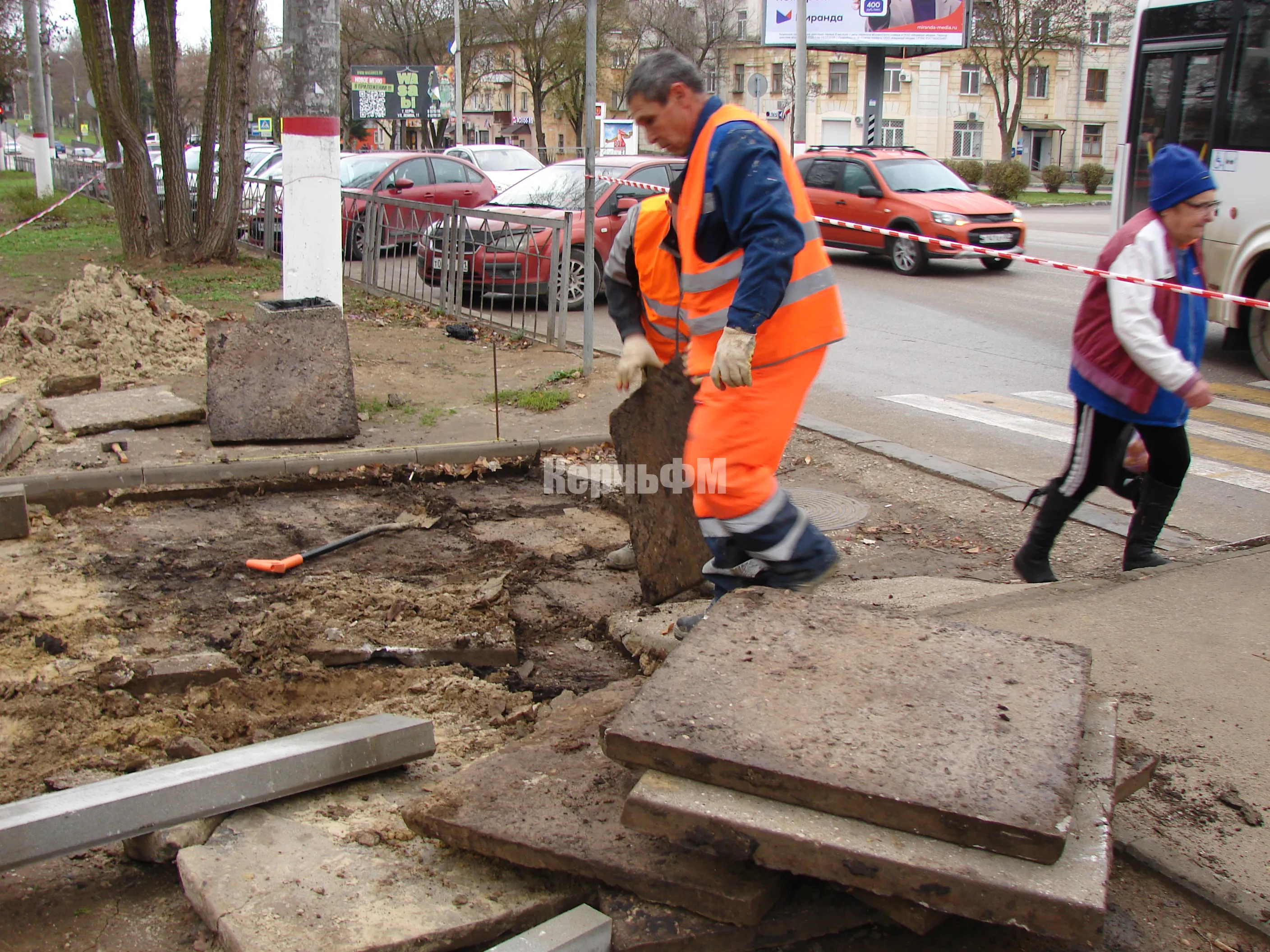 У остановки "Казакова" в Керчи восстанавливают тротуар у пешеходного перехода