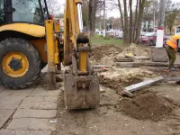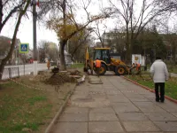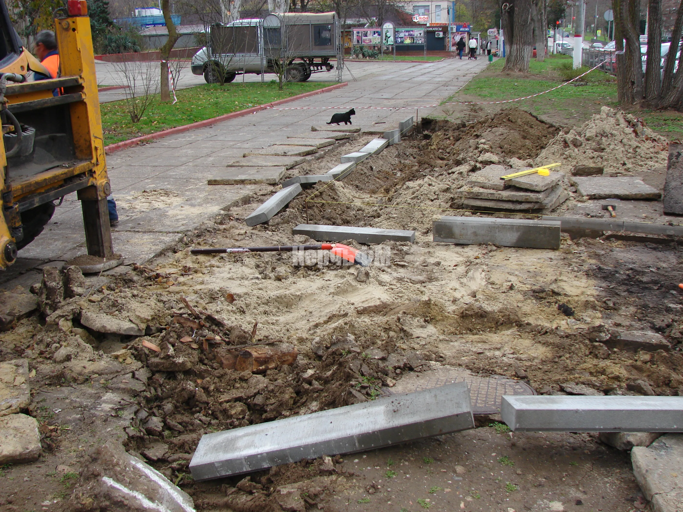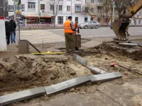 Во время проведения работ по укладке в грунт новых труб магистрального водовода по улице Войкова был разрушен тротуарный подход к пешеходному переходу у остановки "Казакова".