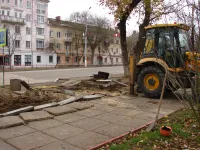 Ведется демонтаж старой плитки и готовится основание для капитального ремонта прохода к пешеходному переходу.
