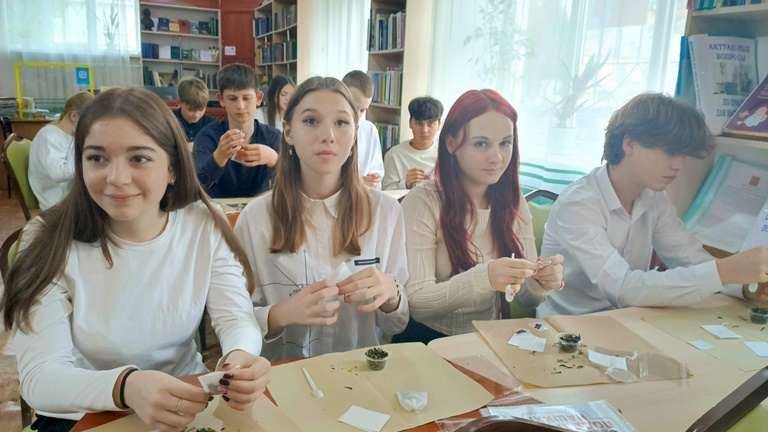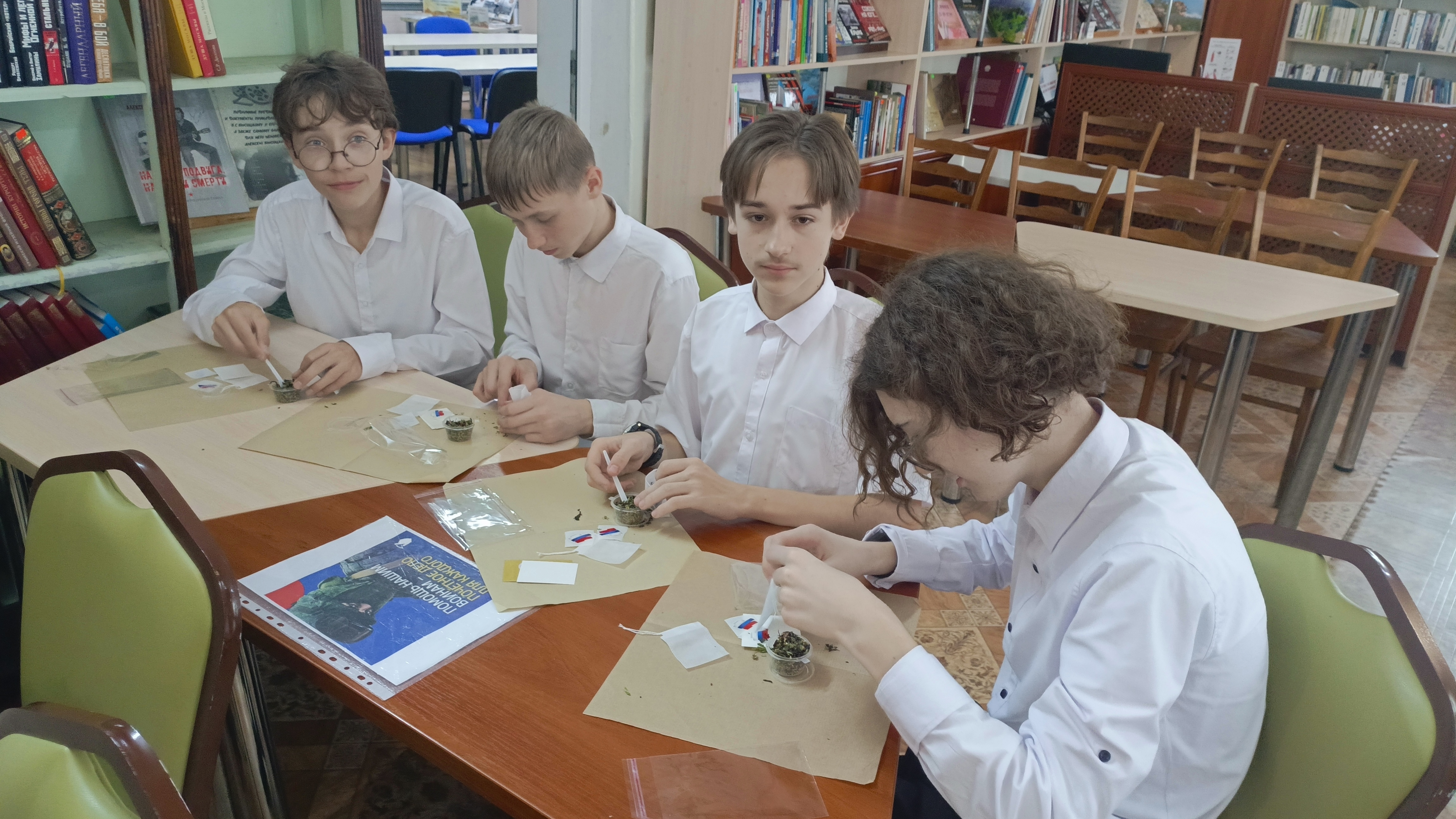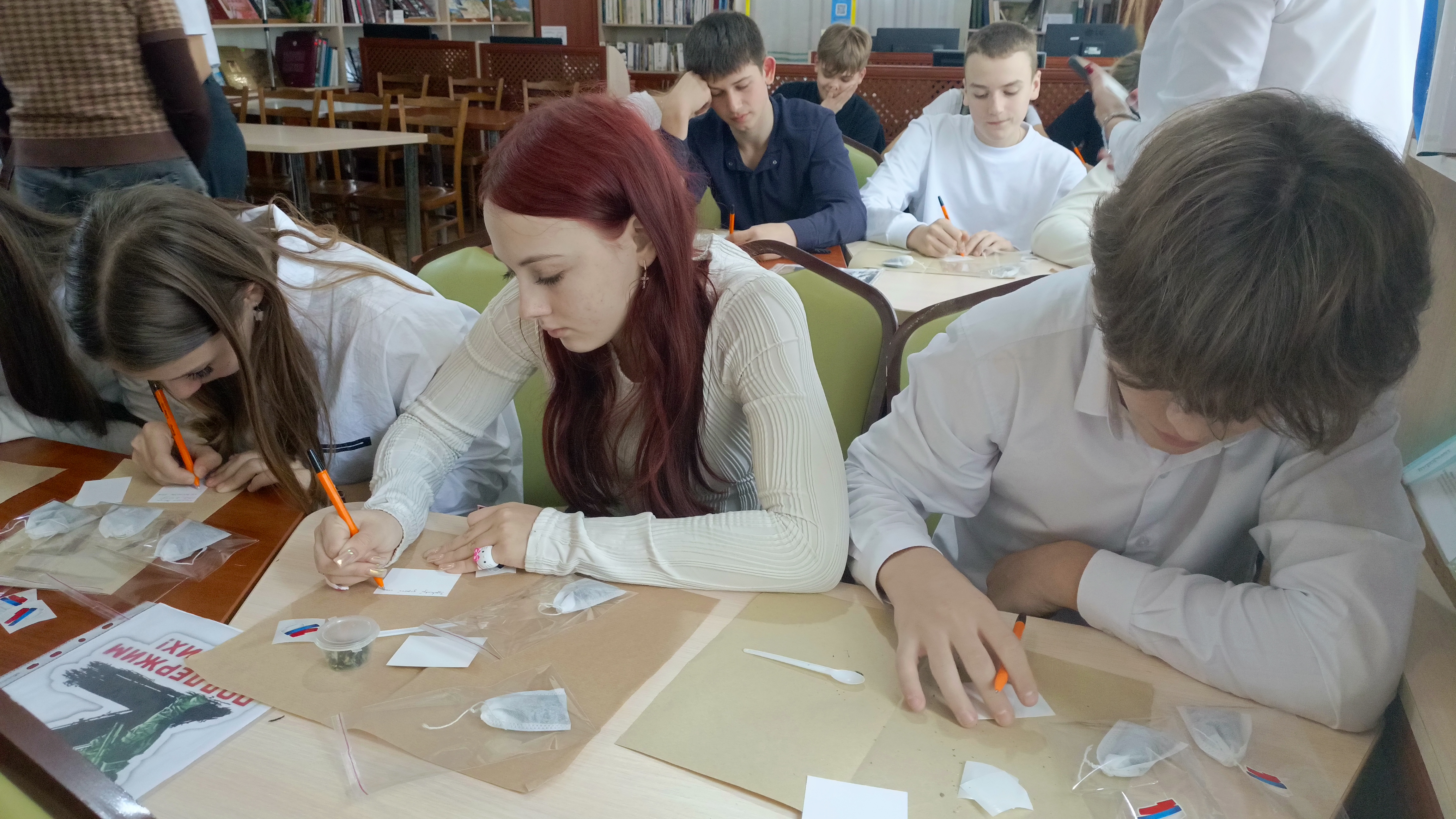 Затем начался сам мастер-класс. Каждый ученик собственноручно упаковывал пакетики чая, вкладывая в них частичку тепла и заботы. К каждому пакетику прилагалась открытка с искренними словами поддержки и пожеланиями скорейшего возвращения домой для военнослужащих, находящихся в зоне специальной военной операции. Пока руки ребят трудились, спикеры рассказывали о составе чая, его полезных свойствах, что сделало занятие не только полезным, но и познавательным.