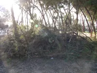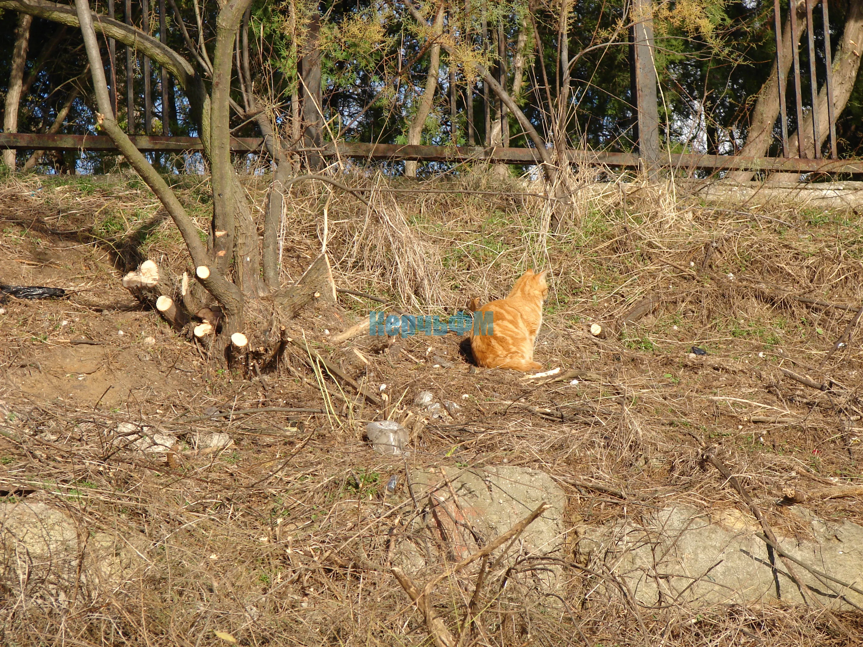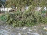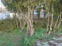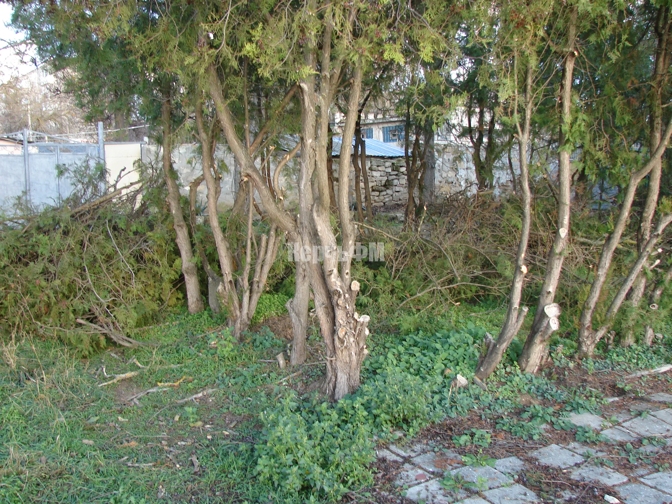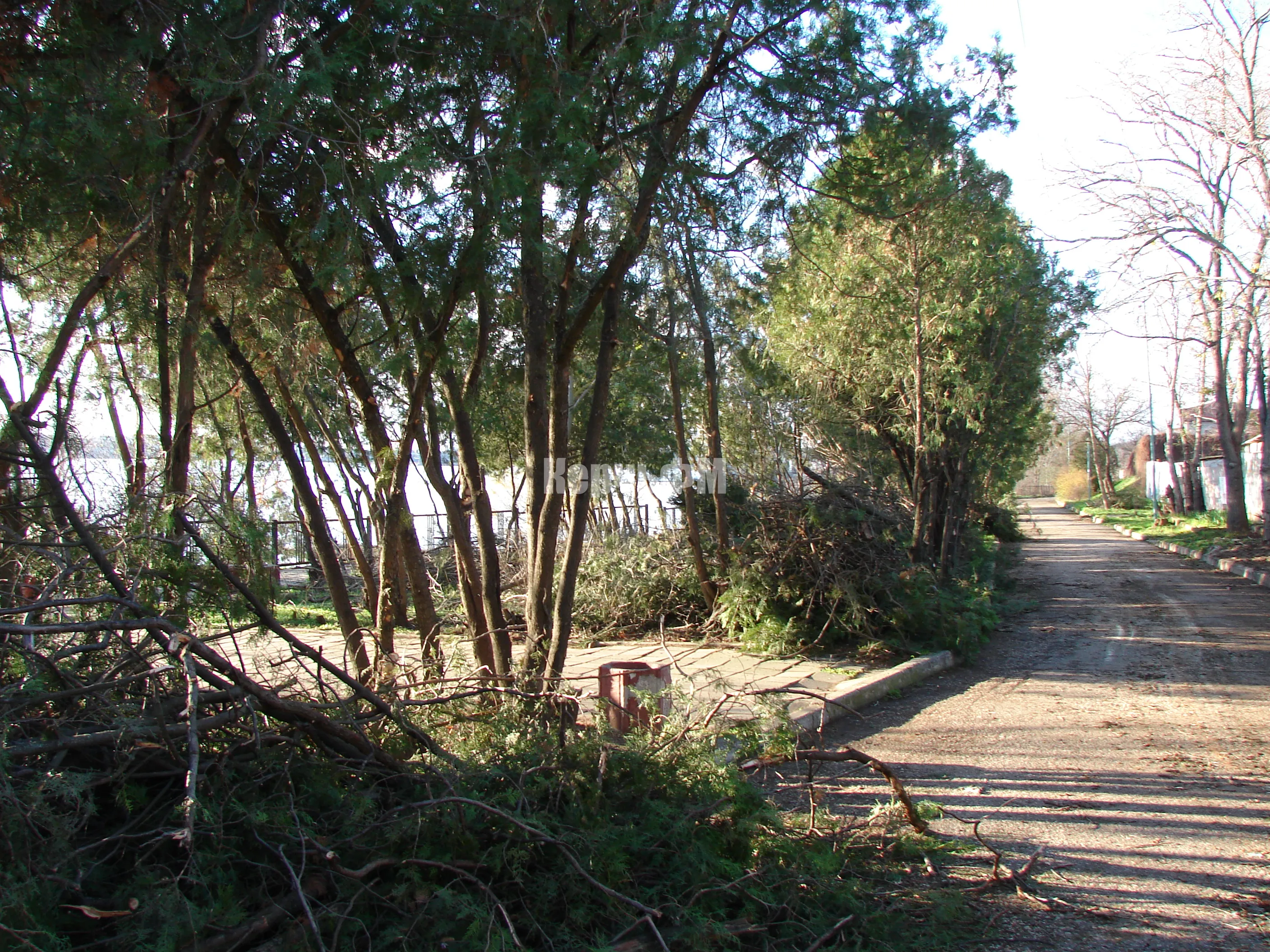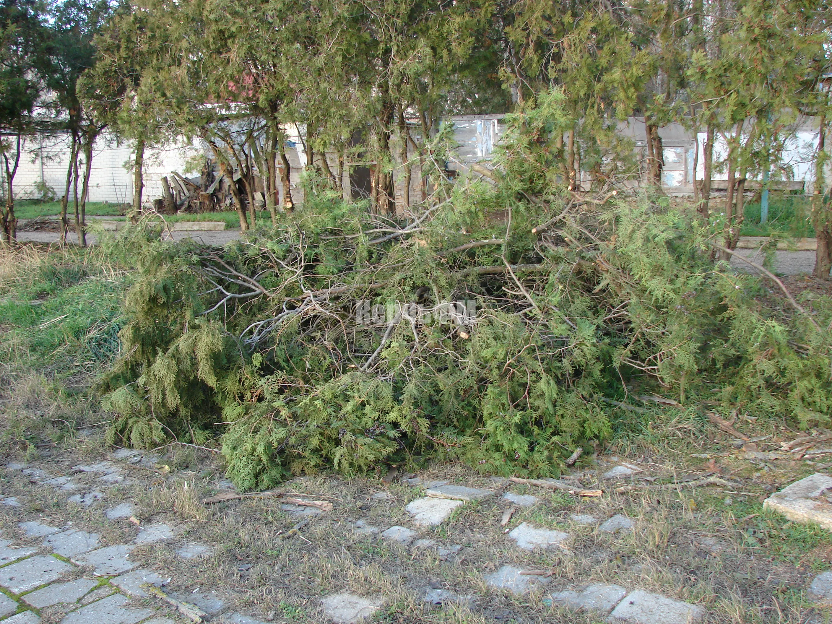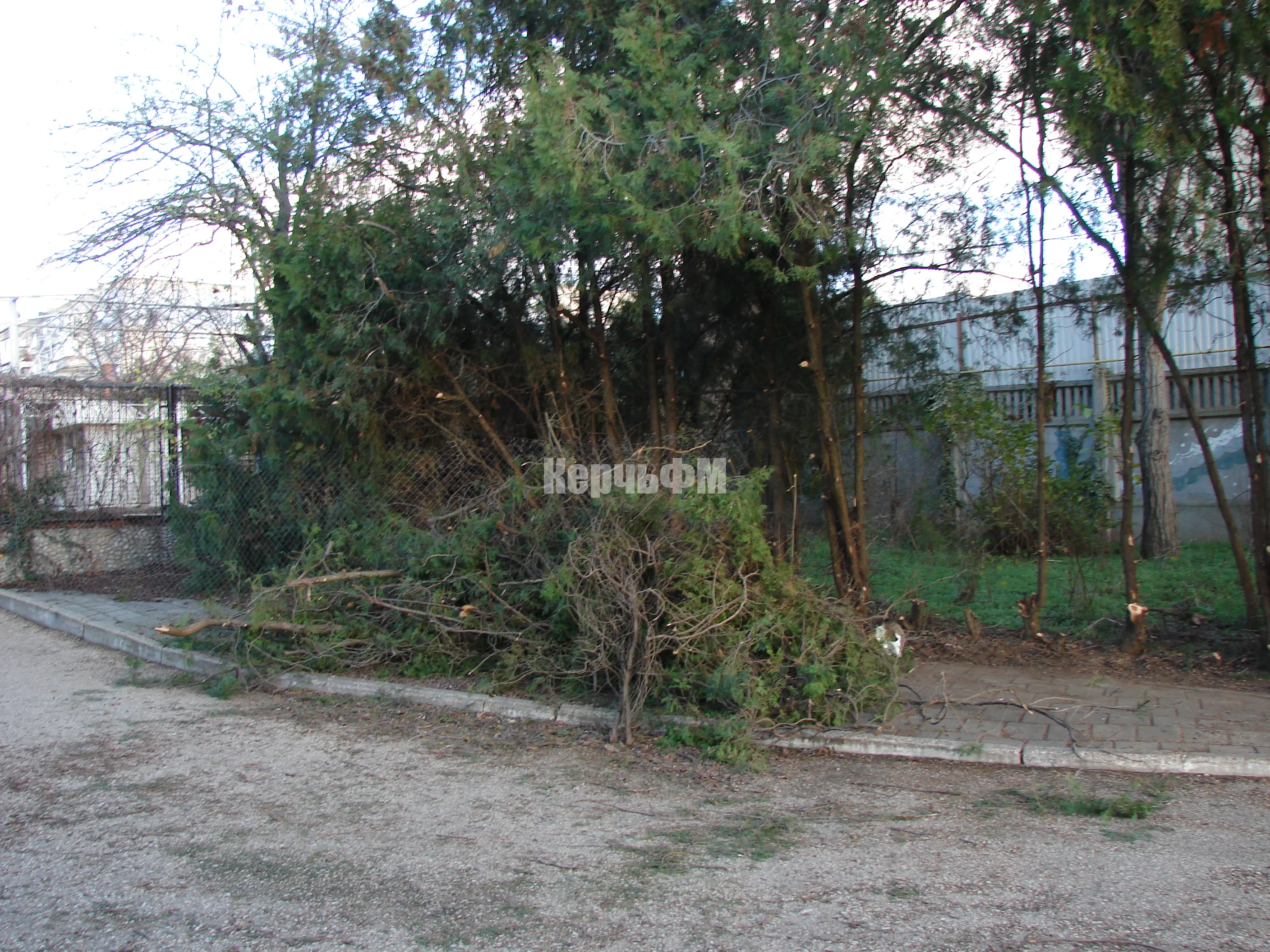Накануне там расчистили территорию, засаженную туями.
