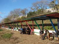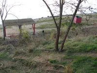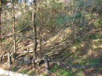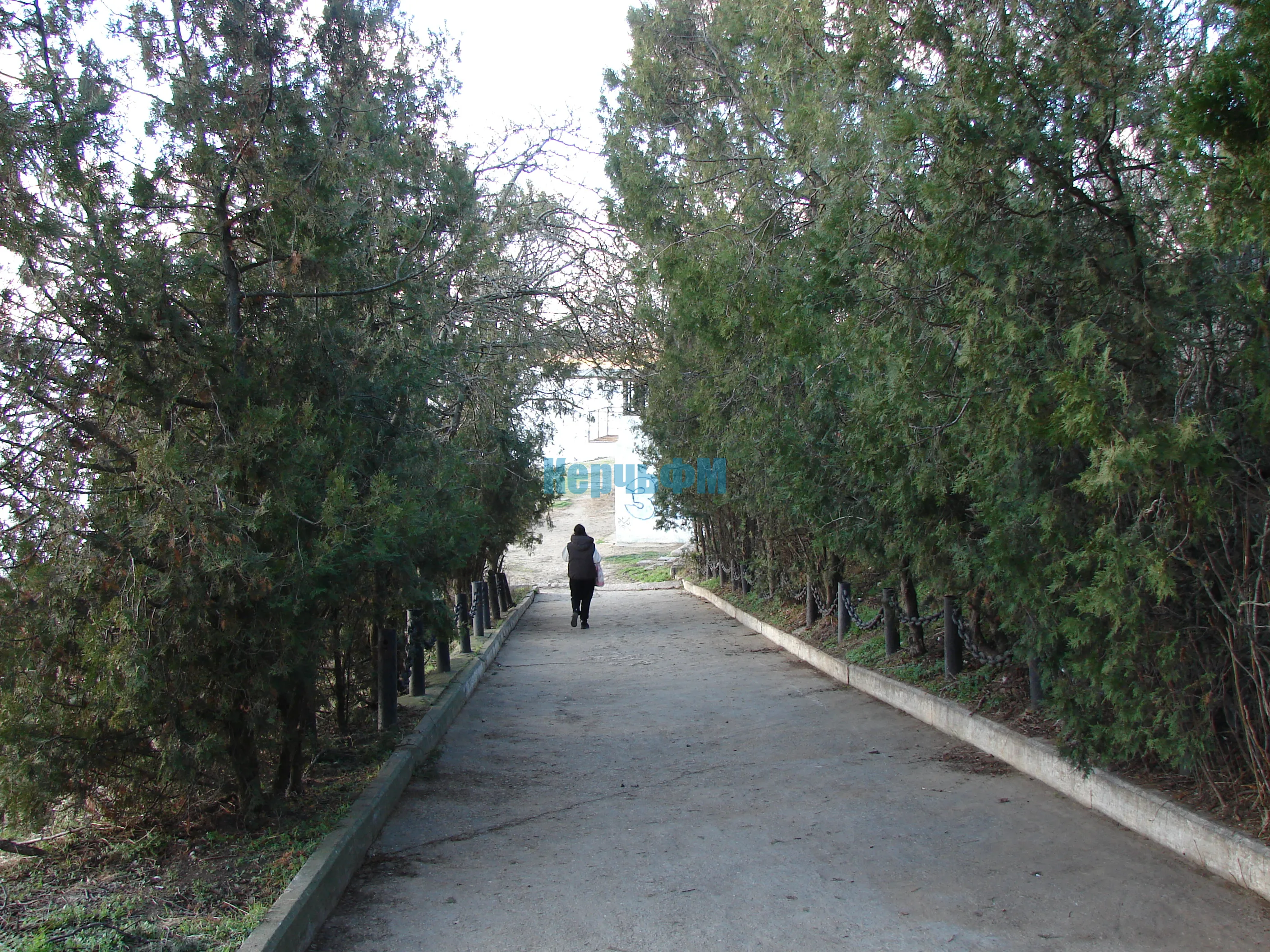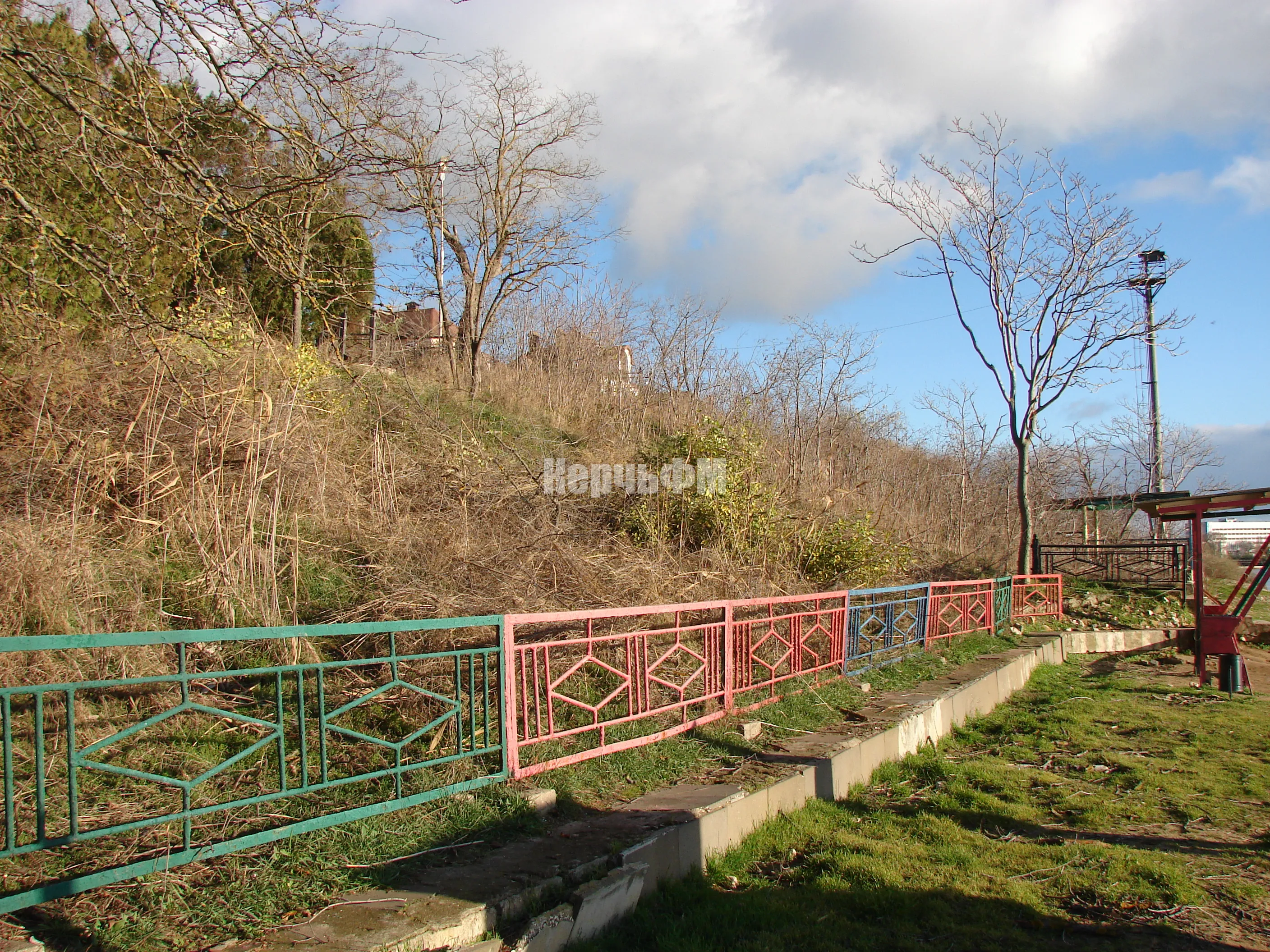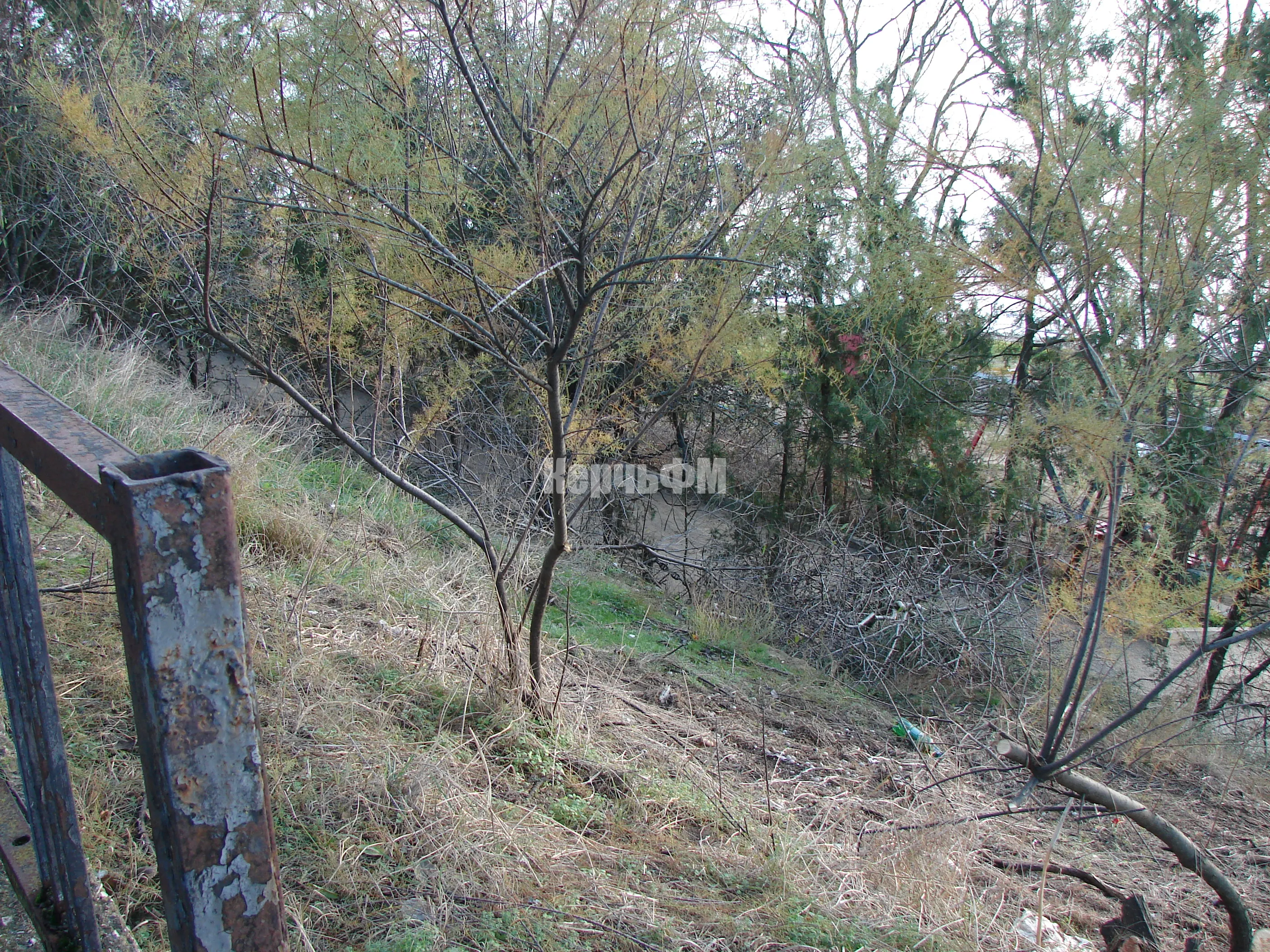 Вдоль спуска туи оставили.