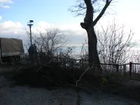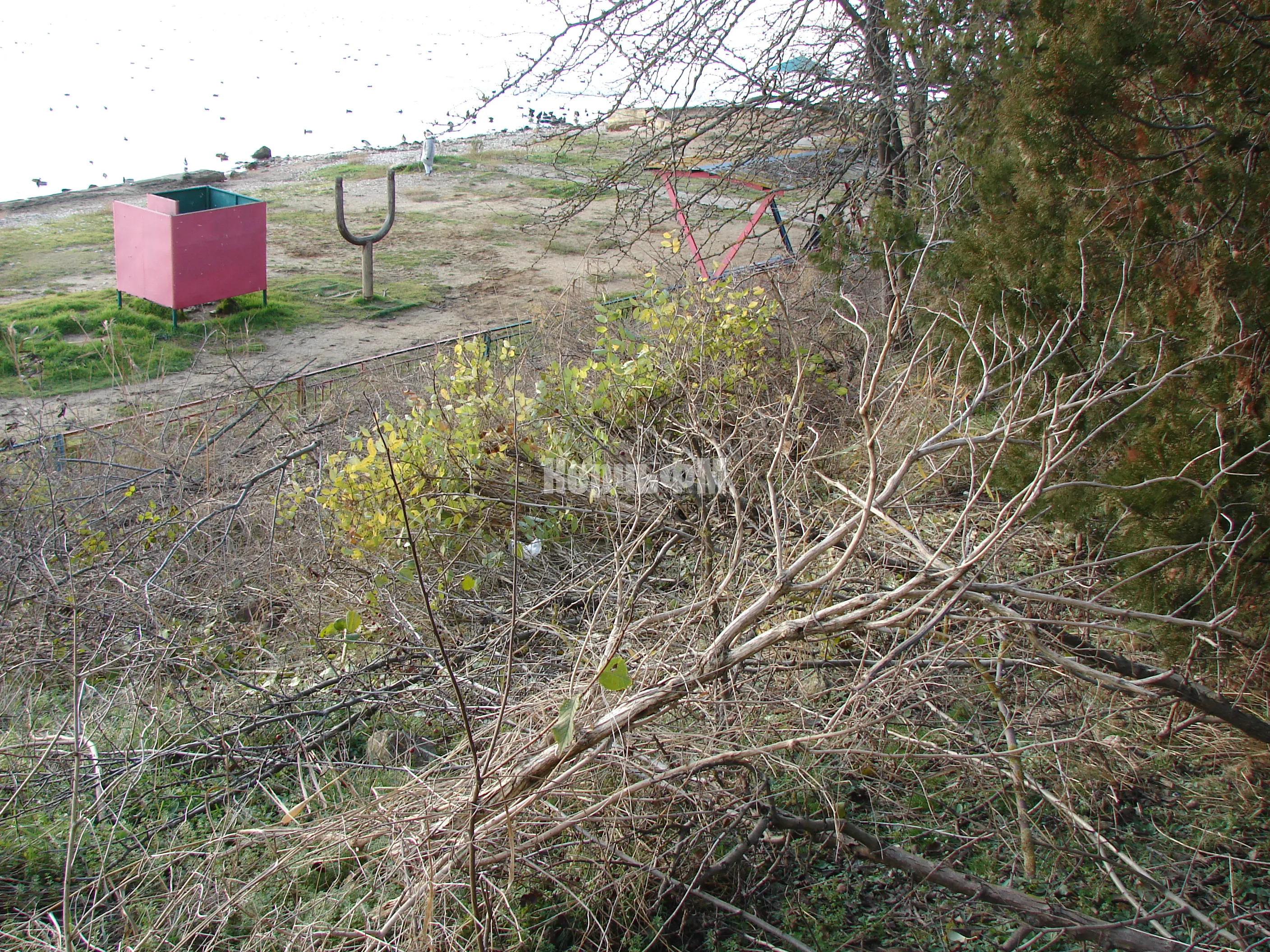 Заросли над пляжем ликвидировали с правой стороны от спуска.