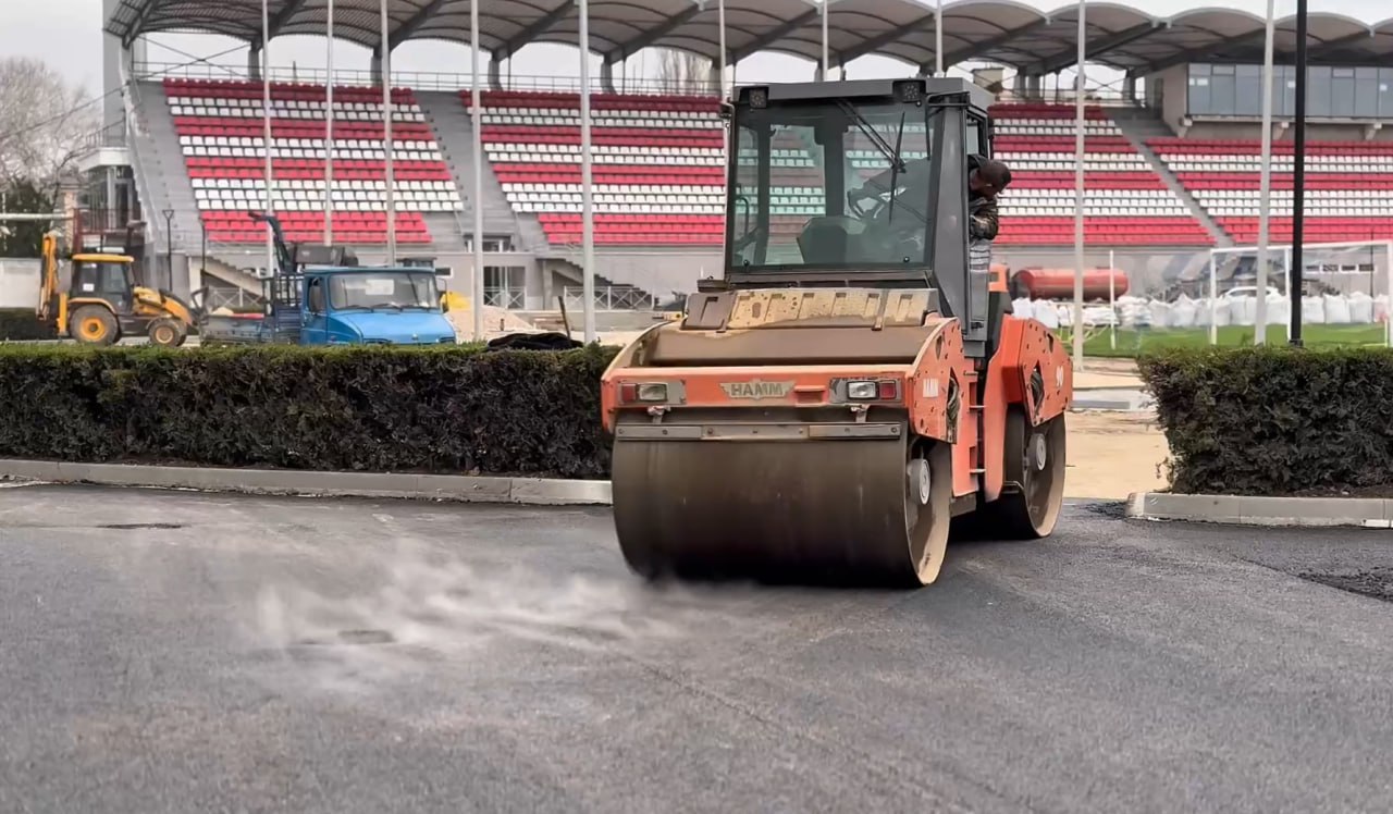 Также вскоре приступят к нанесению резинового покрытия на беговые дорожки. Особенность технологии заключается в том, что материал будут распылять при помощи специального оборудования. Таким образом покрытие получится более крепким и прослужит дольше, чем рулонное.