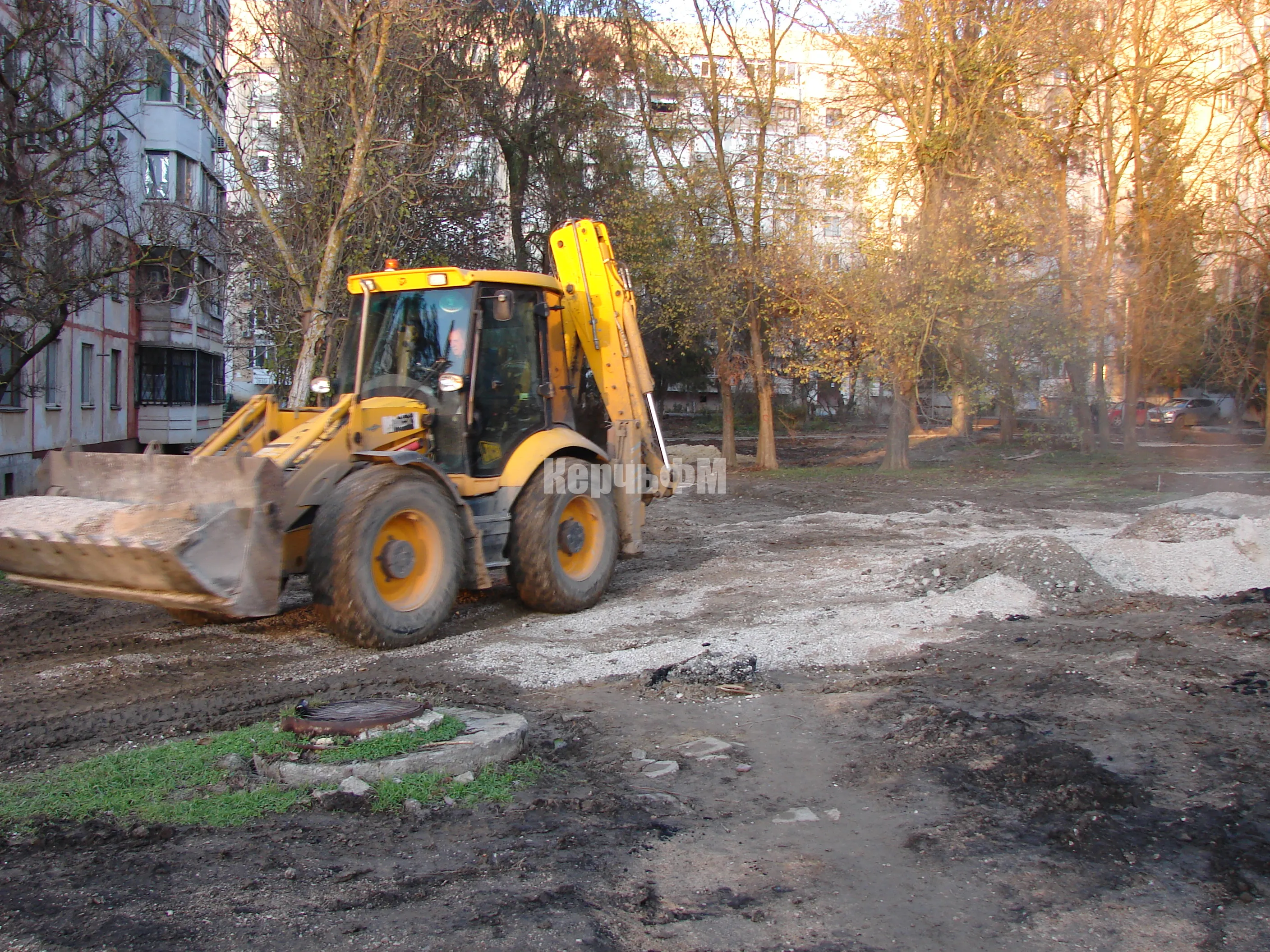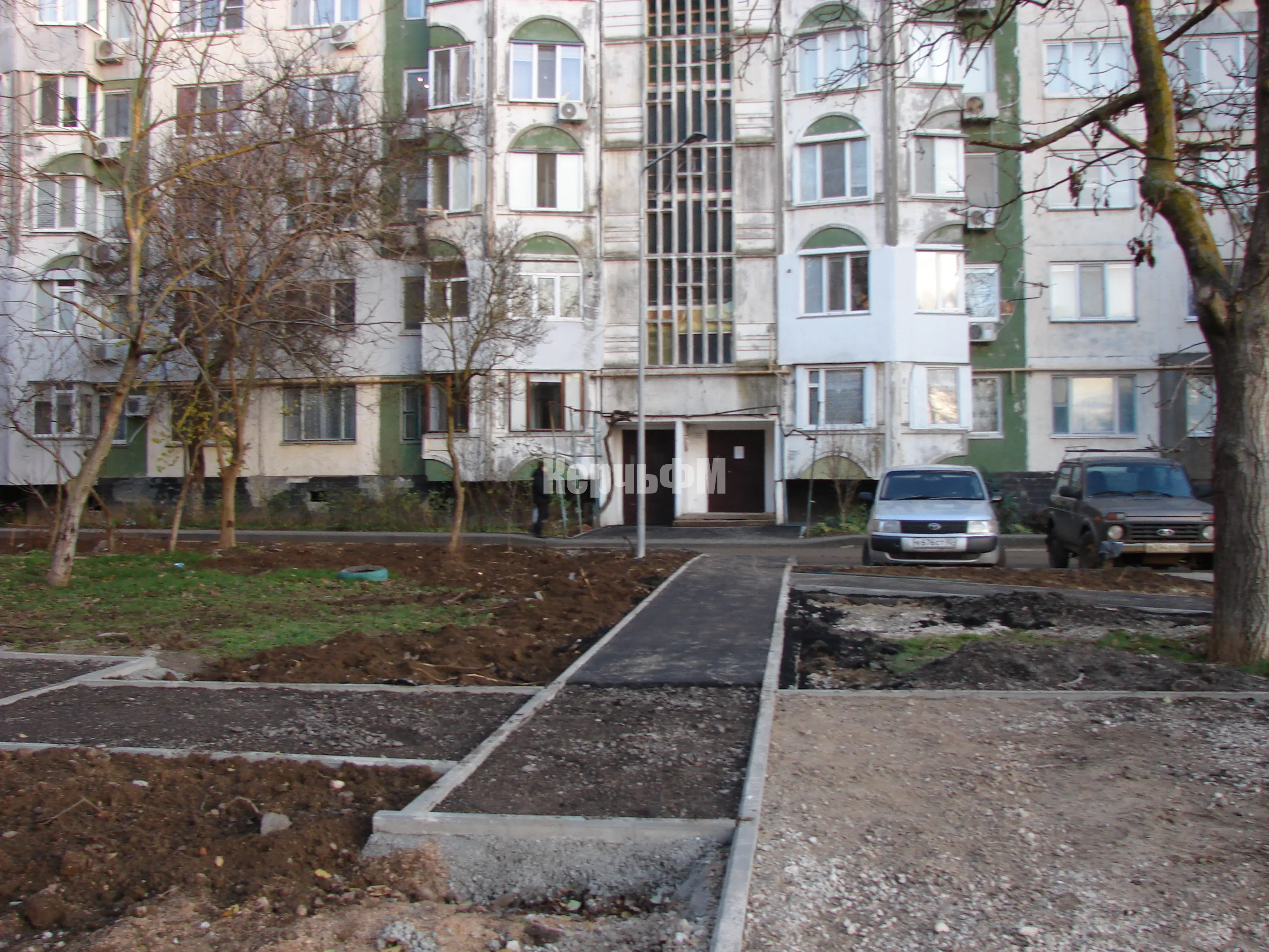 Продолжается укладка асфальта на бельевых площадках и подготовка новых тротуарных дорожек.