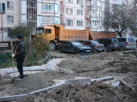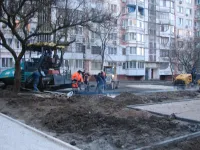 В большом дворе четырех высотных домов по Генерала Петрова, 16, 18, 20 и Сморжевского, 3 продолжается благоустройство территории.