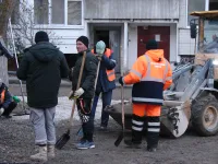 За домом №16 расчищенную площадку готовят к асфальтировке.