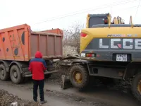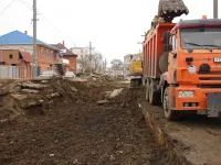В настоящее время работники подрядной организации произвели засыпку разрытия щебнем, вывезли с проезжей части грунт и ликвидируют оставшиеся ямы на Полевой.
