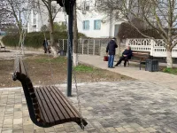 На расчищенных участках земли здесь же были установлены перголы, к которым недавно прикрепили качели.